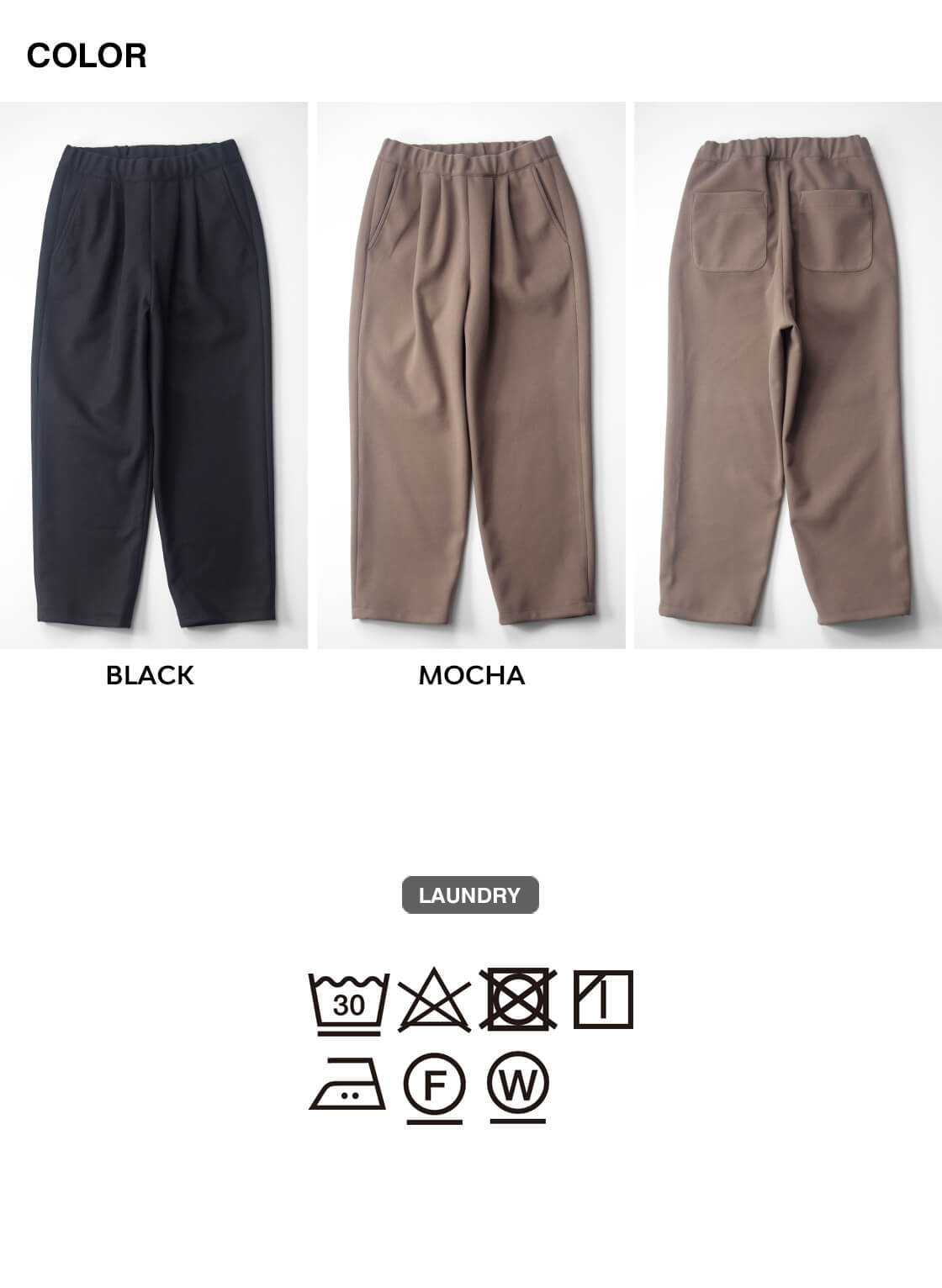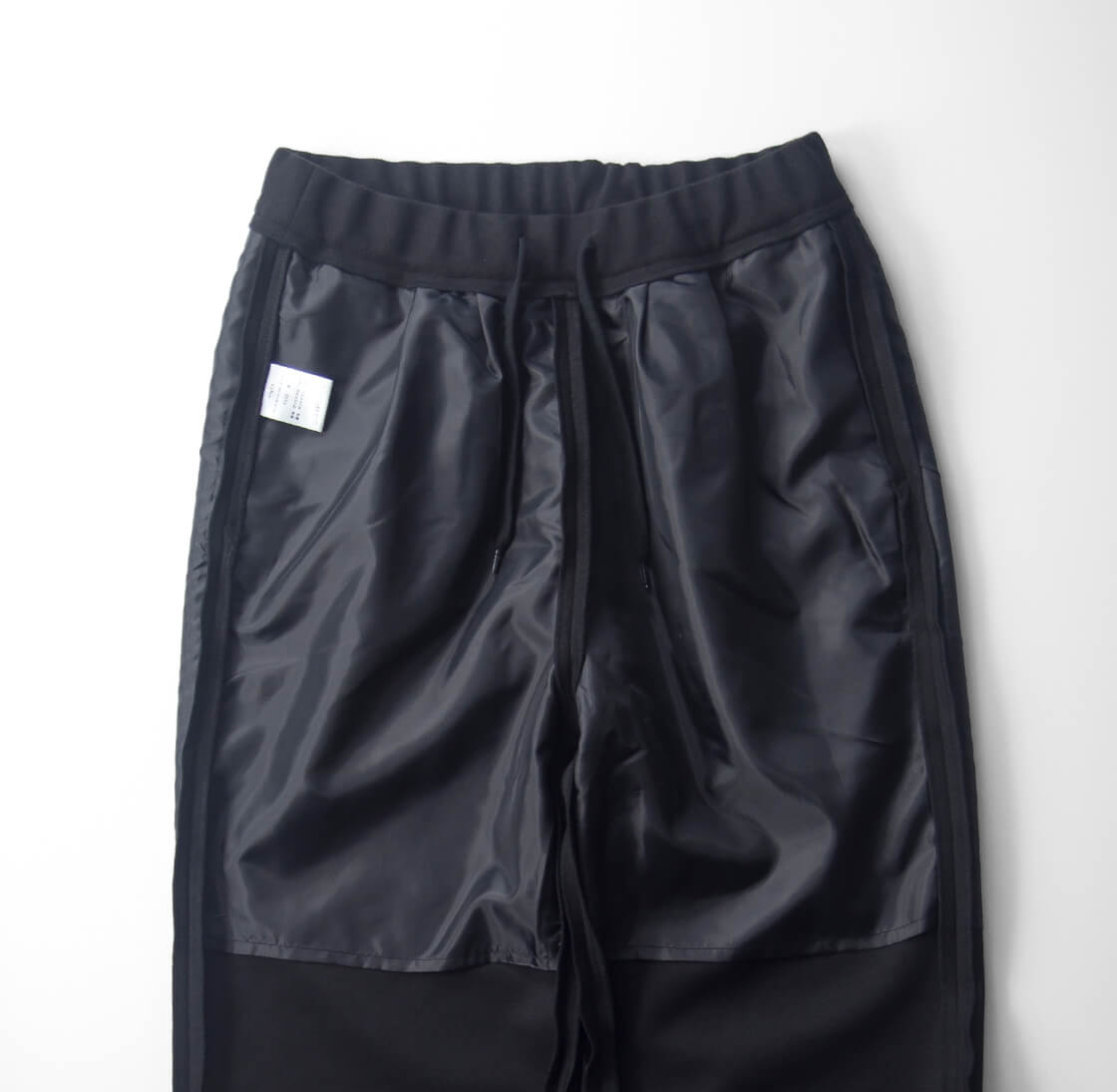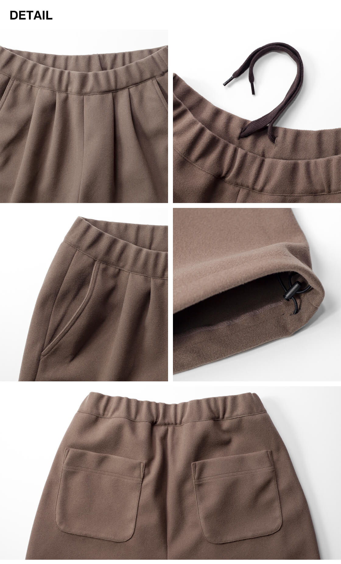 ポリエステルながら上品な厚みで、2タックや裾のドローコードで表情の変化を楽しめる仕様。