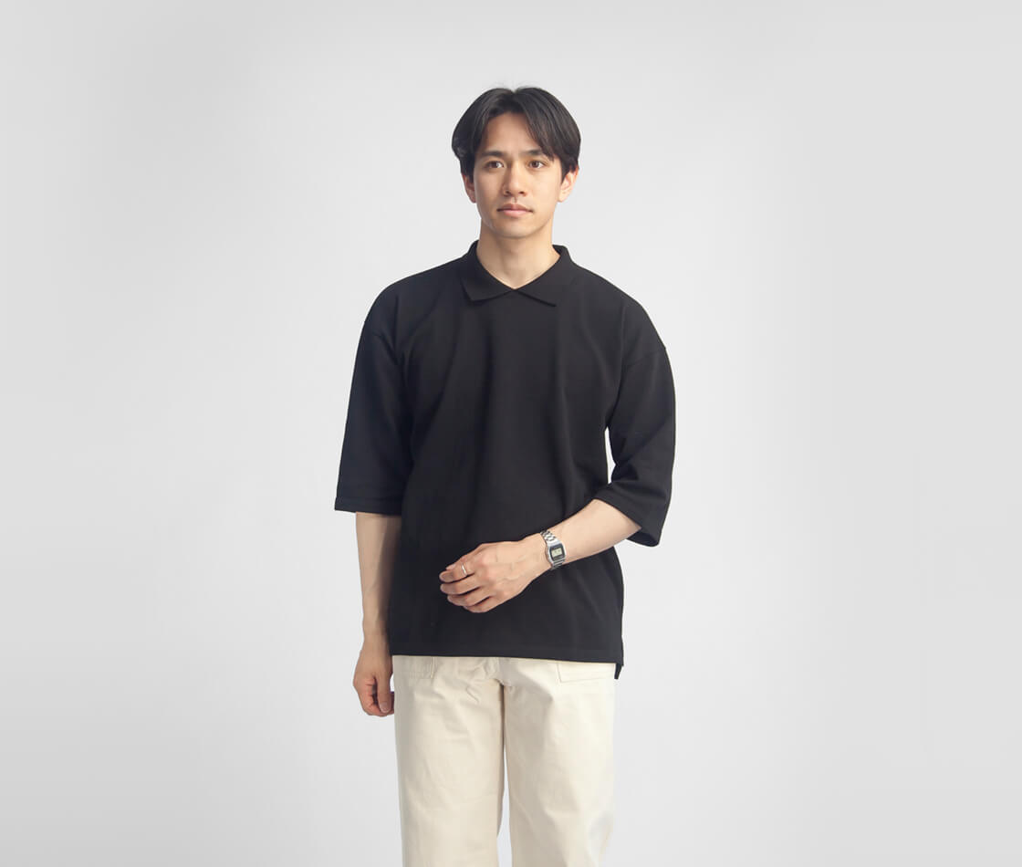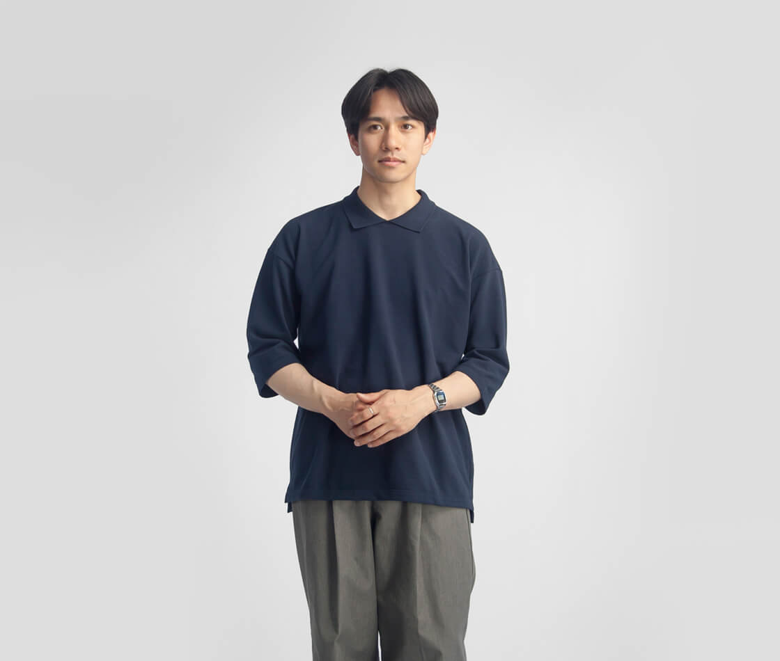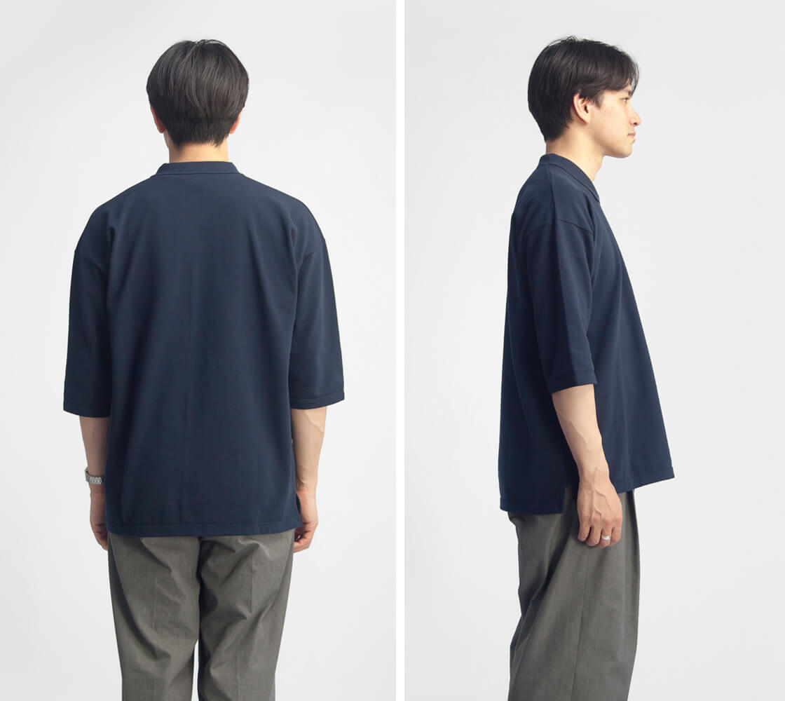 quotidienからドライな着心地と上品さを兼ね備えたボタンレスのオーバーサイズポロをご紹介。