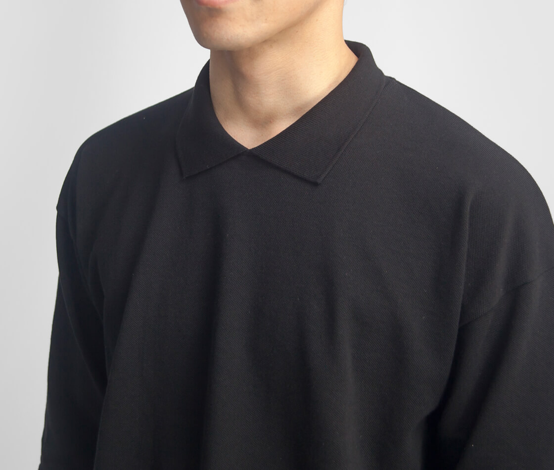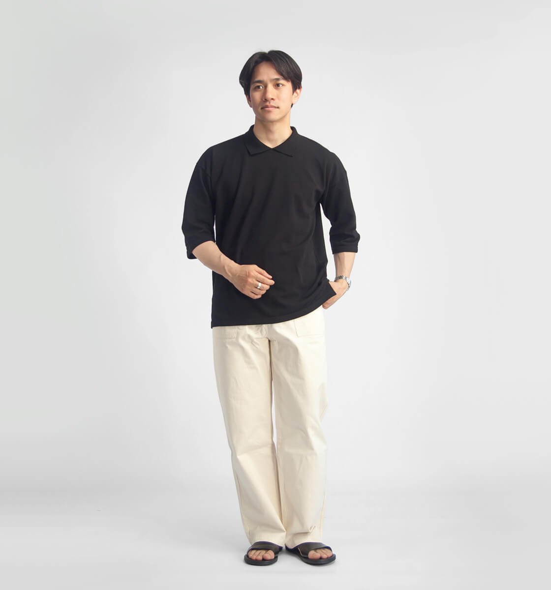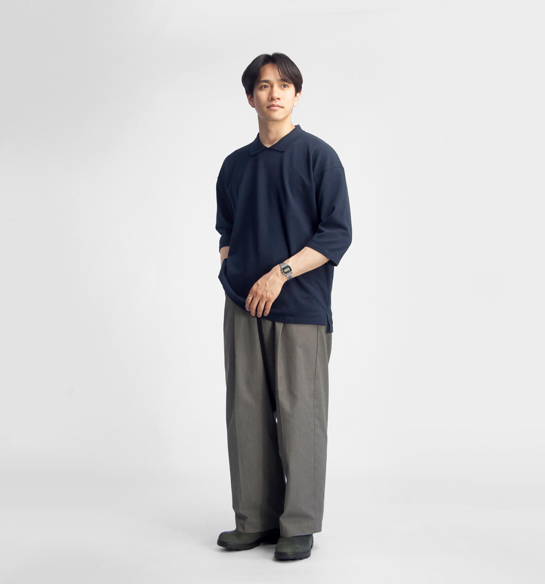 quotidienからドライな着心地と上品さを兼ね備えたボタンレスのオーバーサイズポロをご紹介。