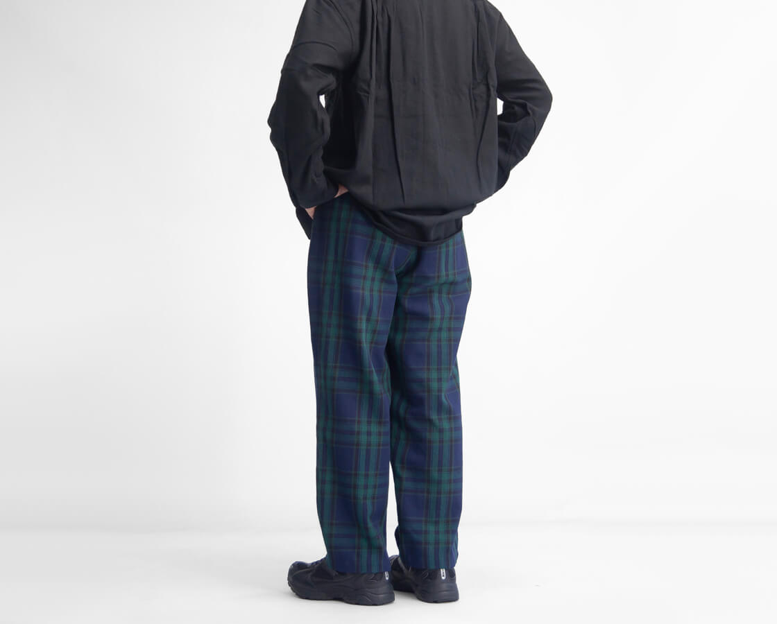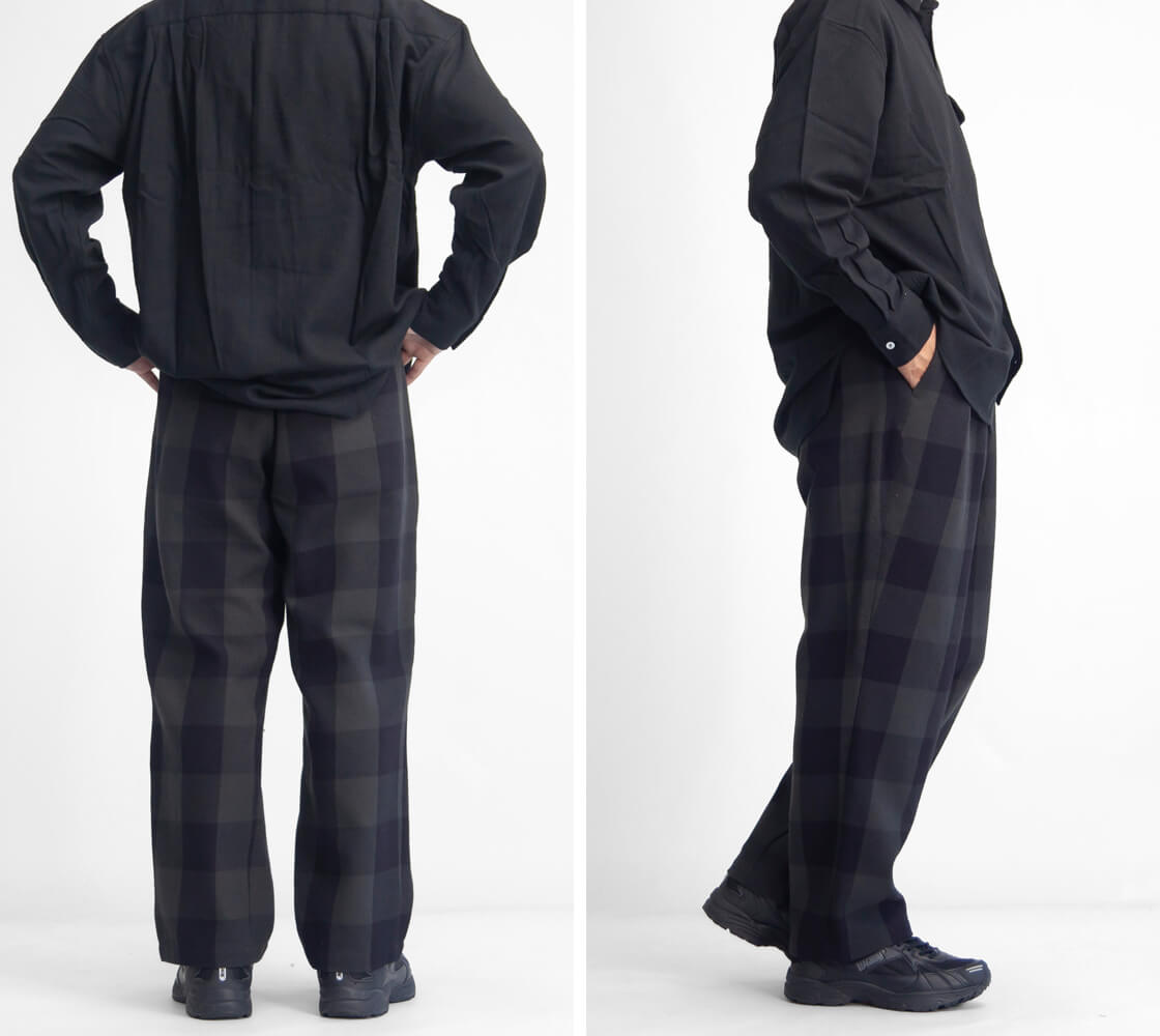 Upscape Audienceから、クラシックな英国調チェックを落とし込んだワイドイージーパンツのご紹介。