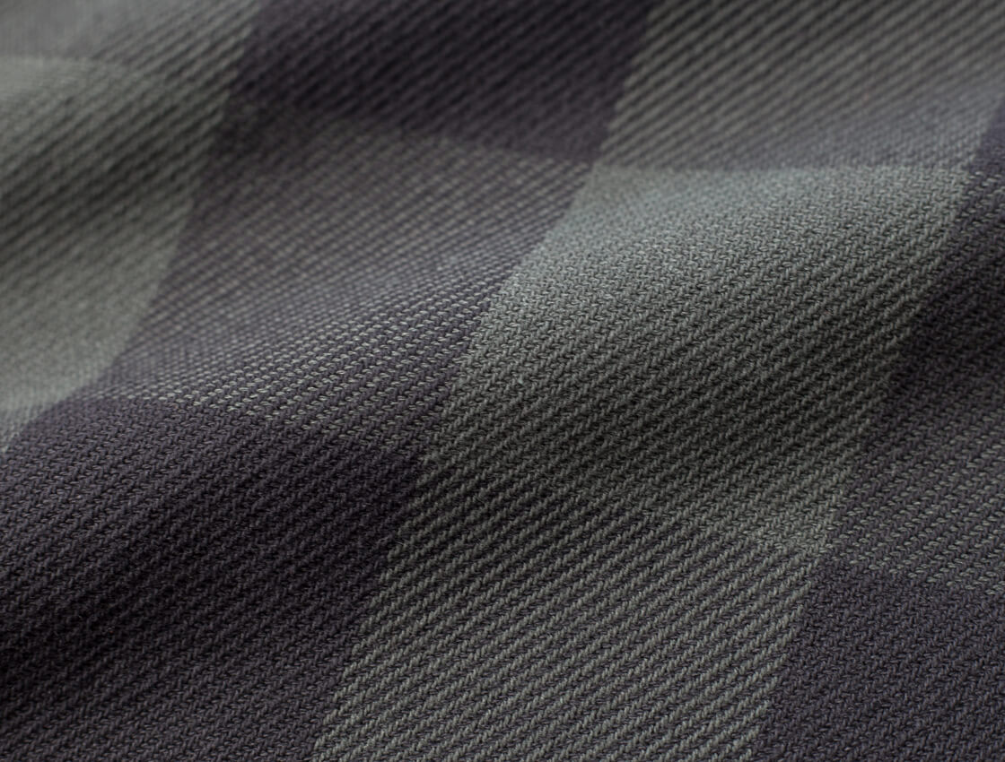 大柄のチェックも落ち着いた配色で派手にならず、秋冬らしい温かみのある表情を演出。