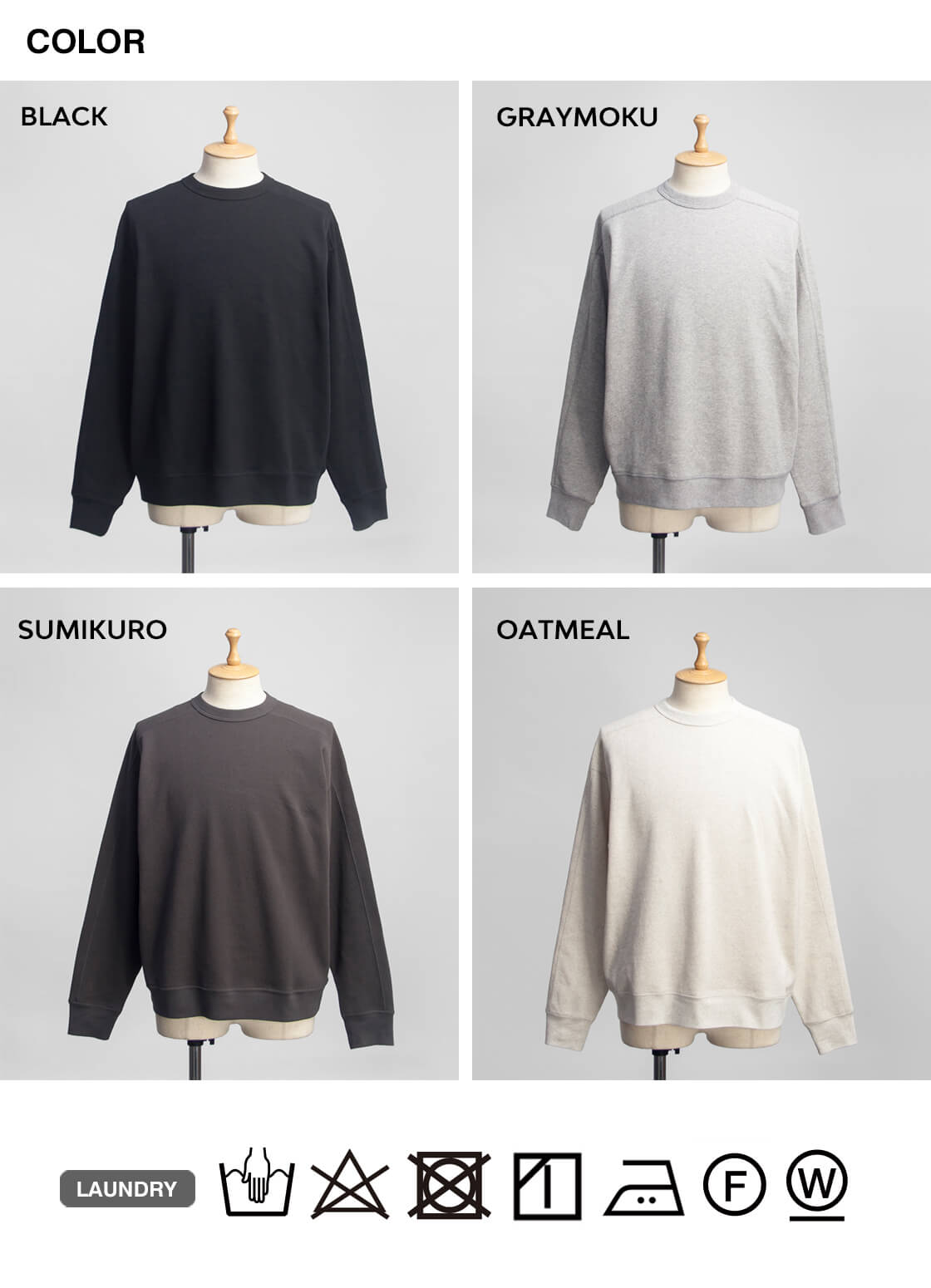 M / 着丈63 / 身幅62 / 裄丈86 モデル着用 168cm/65kgでMサイズ 素材 綿100% カラー展開 ブラック、グレーモク、スミクロ、オートミール 生産国 日本 モデル着用コメント Mサイズを着ました。肩幅が広めですが、ラグラン袖になっているので突っ張りもないです。着丈が短めの印象ではありますが、お尻が半分隠れるくらいの丈感です。全体的にゆとりのあるシルエットになったのでMサイズで問題ないです。 スタッフ着用コメント Lサイズを着用。身幅にゆとりがあってリラックス感のあるスタイルになりました。袖も問題なくリブで少したまるのが良い雰囲気です。着丈は少し短めに感じましたが、ロンTとして問題ないサイズ感でした。Mサイズにすると丈がより短くなったのでLサイズがベストですね。 |