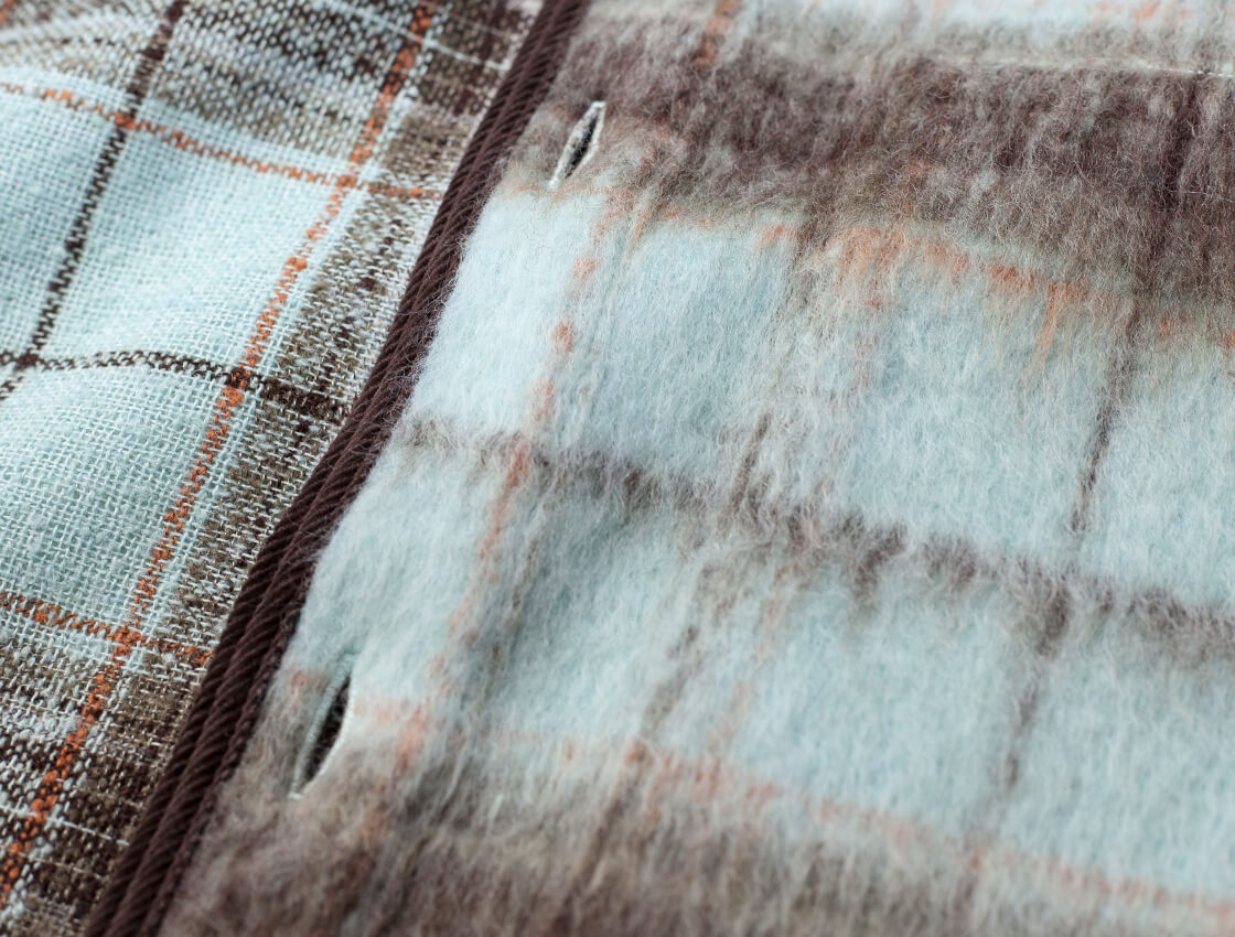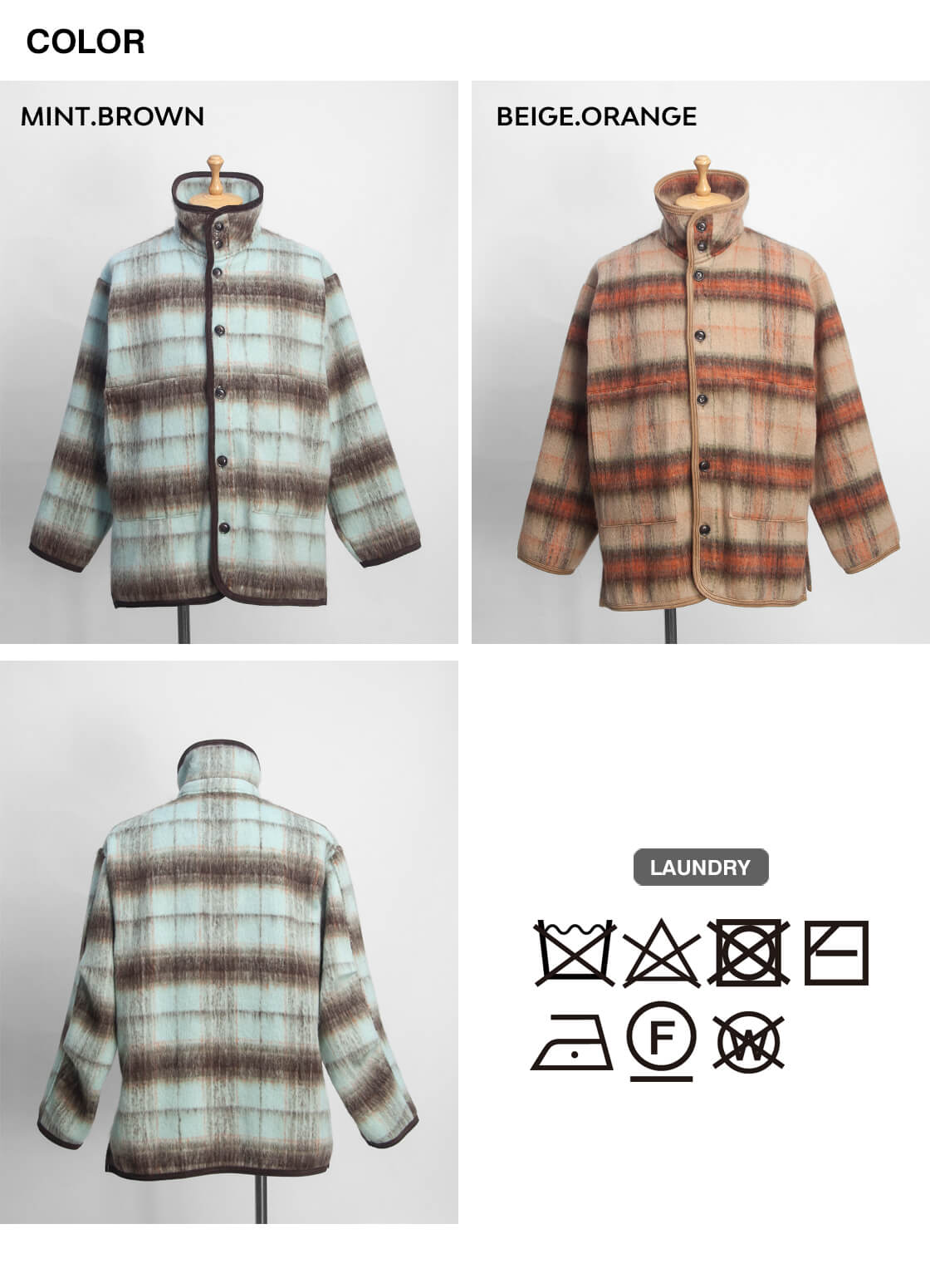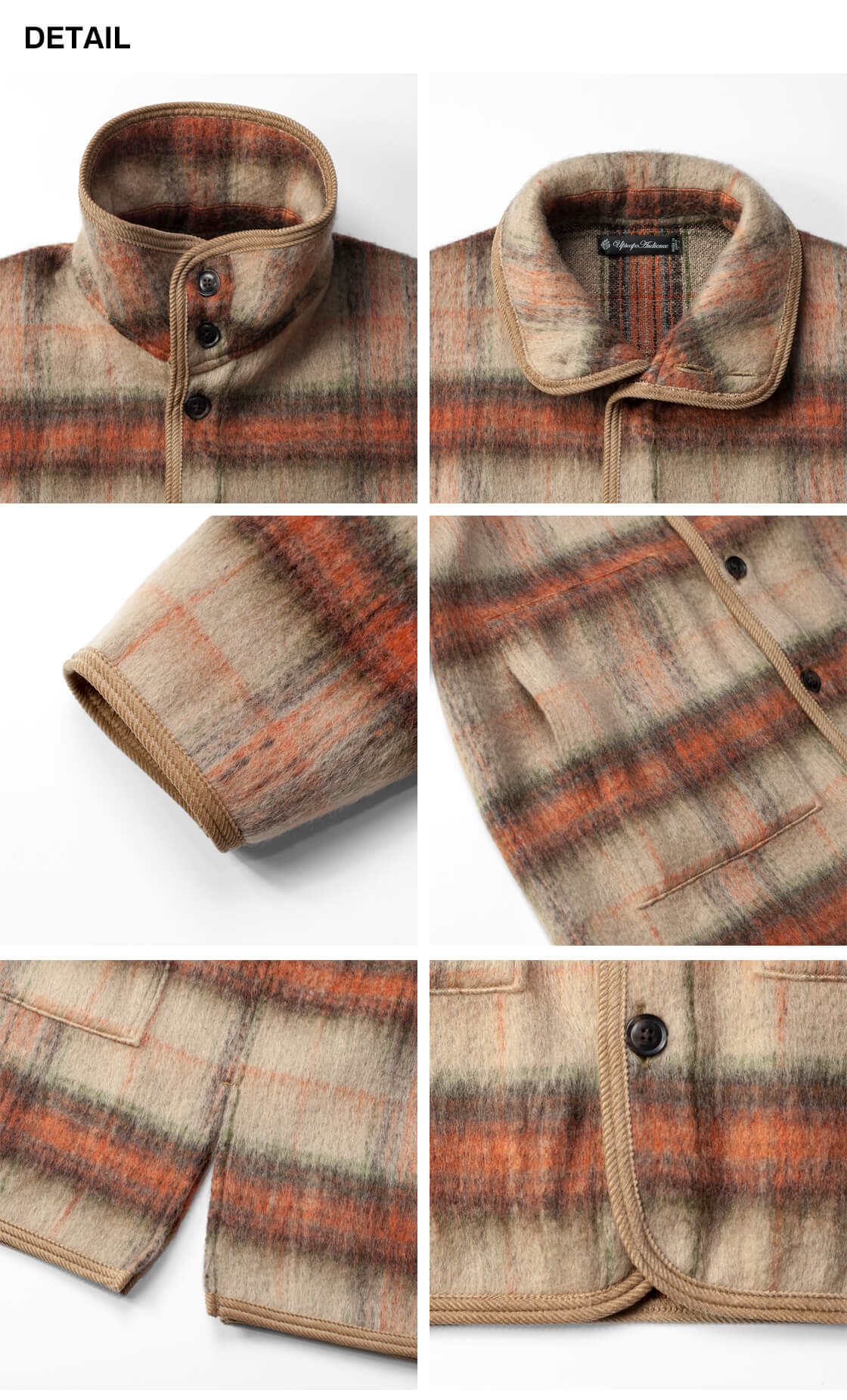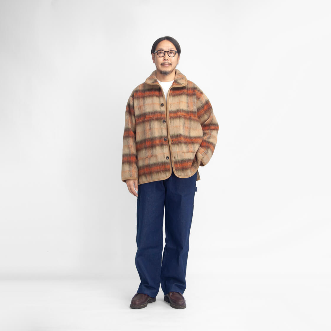 Upscape Audienceからモヘヤライクなシャギー素材のレトロなスタンドカラージャケットのご紹介。 やや高めのスタンドカラーは立てても寝かせても決まり、コーデュロイのパイピングがさりげないアクセントになります。 ゆったりと羽織れるサイズで厚手のインナーにも対応し、深めのスリットで動きやすさを確保。 ウールとリサイクルポリエステルを組み合わせたECOLANAで、軽さと暖かさを両立しつつ扱いやすい点も魅力です。 毛足の表情とチェック柄が存在感を放ち、シンプルな着こなしでもサマになる便利な秋冬アウターです。