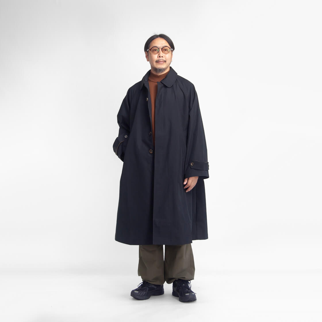 38 / 着丈111 / 身幅73 / 裄丈84 モデル着用 170cm/62kgで38サイズ 素材 表地(綿65% ポリエステル35%) カラー展開 ブラック、チャコール 生産国 中国 モデル着用コメント 38サイズを着用しました。ゆったりワイドなシルエットでジャケットの上からでも余裕で羽織れるサイズ感です。肩はラグラン仕様なので動かしやすく窮屈に感じたりもありませんし、袖丈は手を下ろすと手の甲が少し隠れるぐらいのちょうどよい長さでした。着丈は膝下にくるロング丈で、僕が着用するなら38サイズで十分です。腕が長い方は40サイズでも良いかと思います。 スタッフ着用コメント 40サイズを着用しました。全体的にかなり余裕のある大きさですが、違和感なく今の雰囲気で着こなせます。厚手のインナーでもノンストレスで着用出来ます。袖丈は手の甲が半分隠れるぐらいで、着丈は膝下の長さで雰囲気もあります。僕の場合、40サイズでちょうどよい感じです。 |
