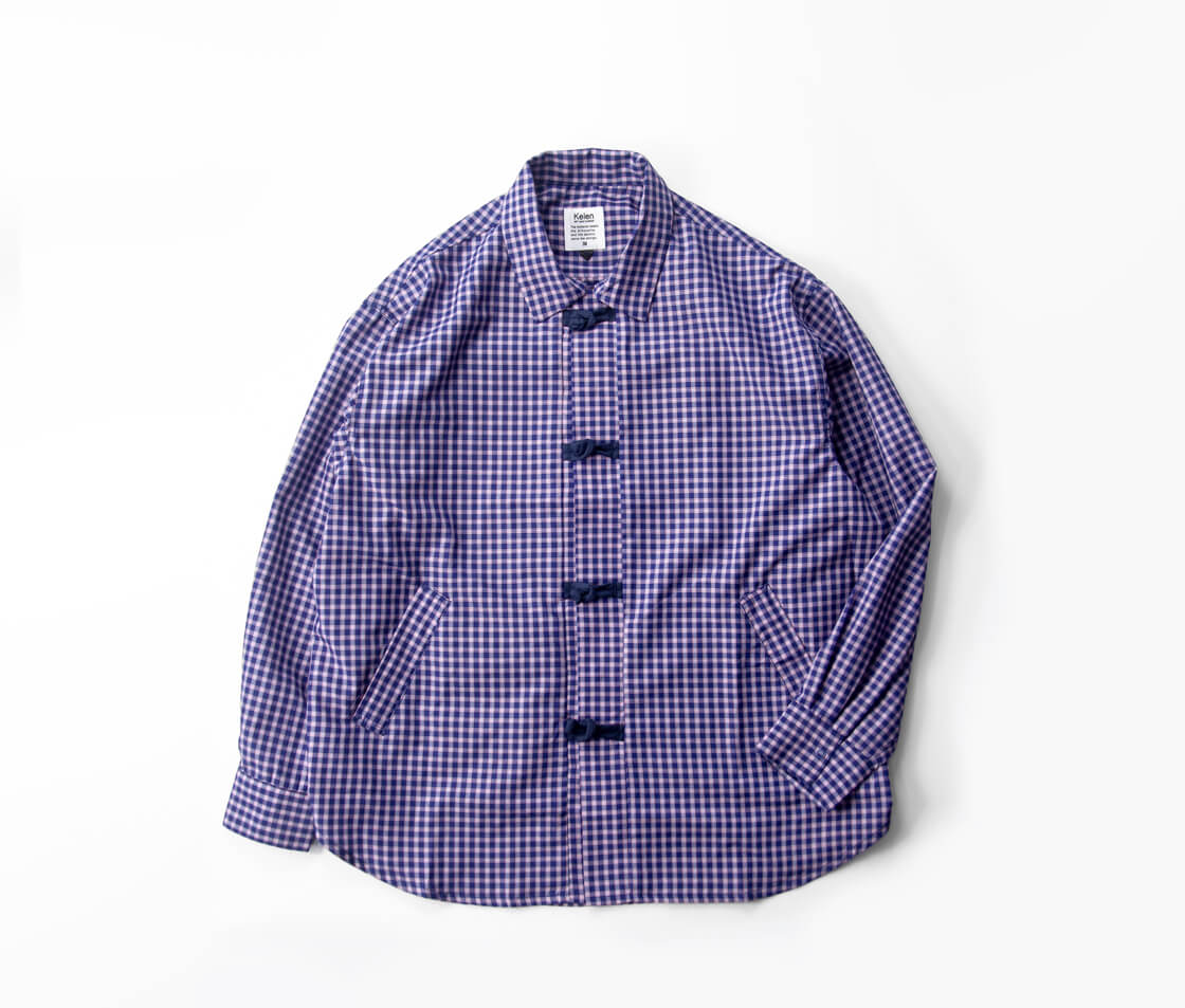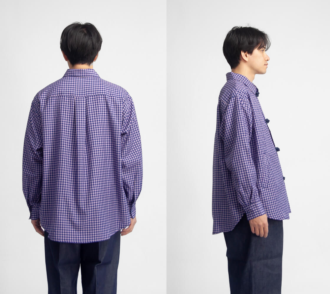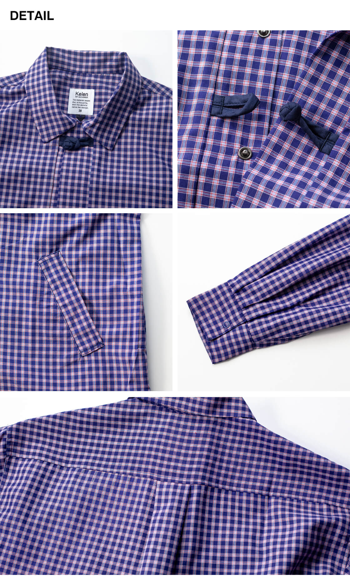 KELENから、丸みのあるフォルムとチャイナ釦が映える軽快なチェックシャツをご紹介。