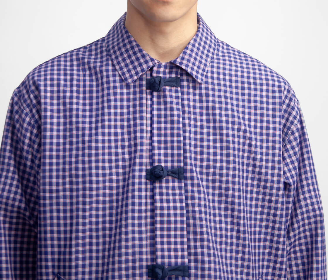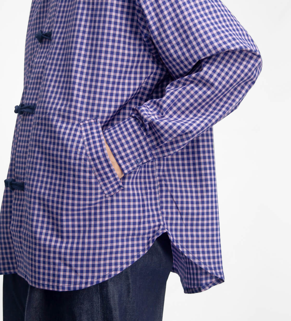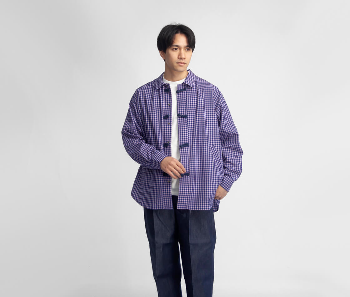 KELENから、丸みのあるフォルムとチャイナ釦が映える軽快なチェックシャツをご紹介。