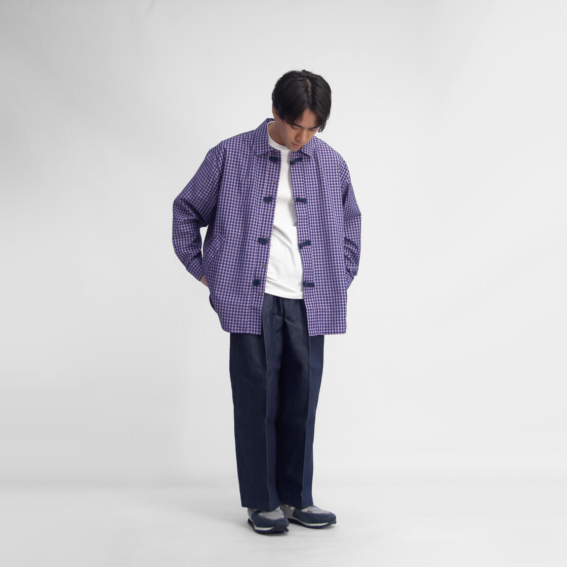 KELENから、丸みのあるフォルムとチャイナ釦が映える軽快なチェックシャツをご紹介。 ゆとりを持たせたサイズ感に丸みのあるシルエット。 ボタンを留めてシャツとしても、開けて羽織としても着用可能です。 チャイナ釦とドットボタン、脇に配された箱ポケットが特徴。 着心地は軽やかで肌離れが良く、気負わず着られるのが魅力。 素材には綿ポリエステルのブロードチェック生地を使用。 薄手で速乾性とシワになりにくさを備え、シャツジャケット感覚で羽織れる、春夏らしい一着です。