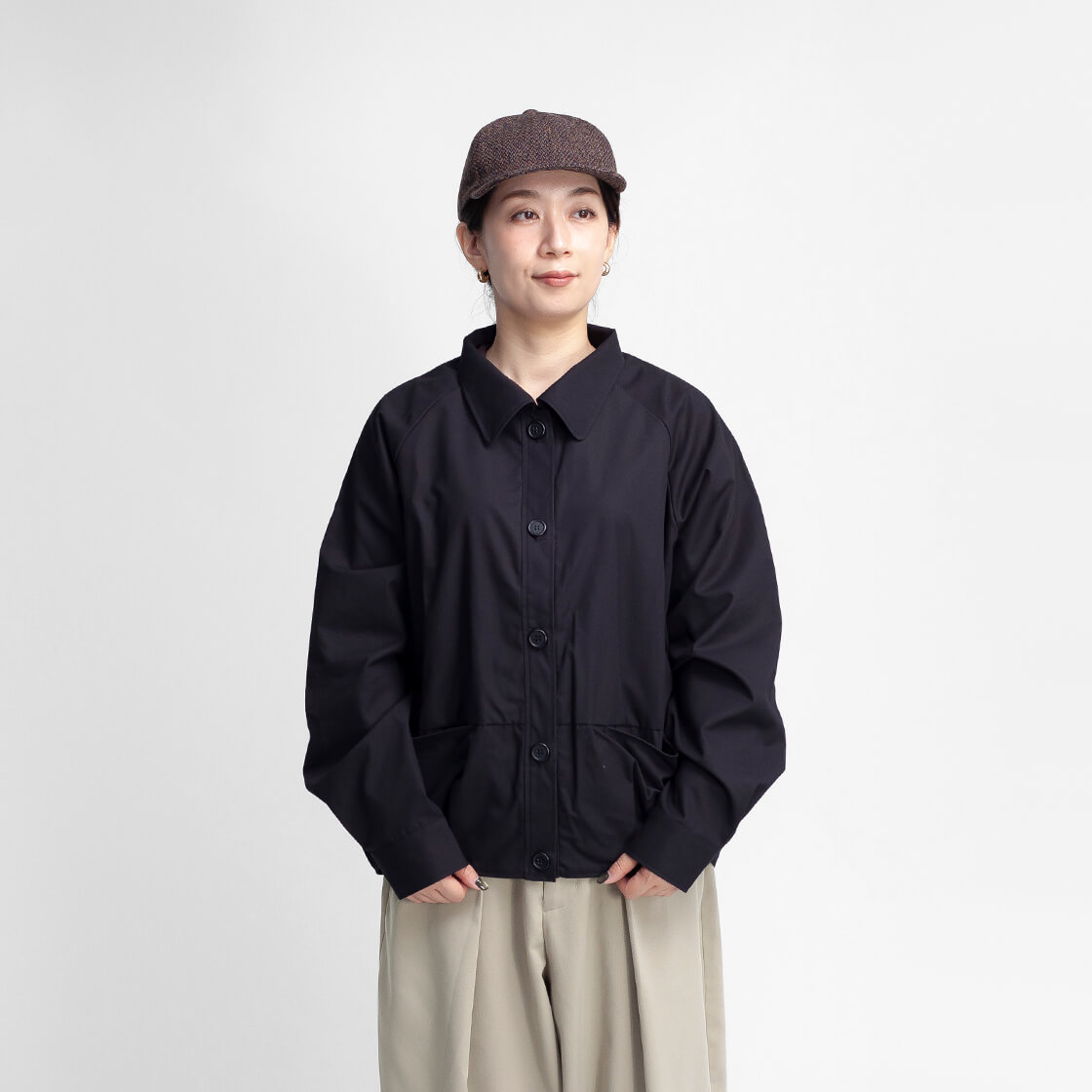 気軽さと上品さを兼ね備え、秋冬のスタイルに取り入れやすいアイテムです。