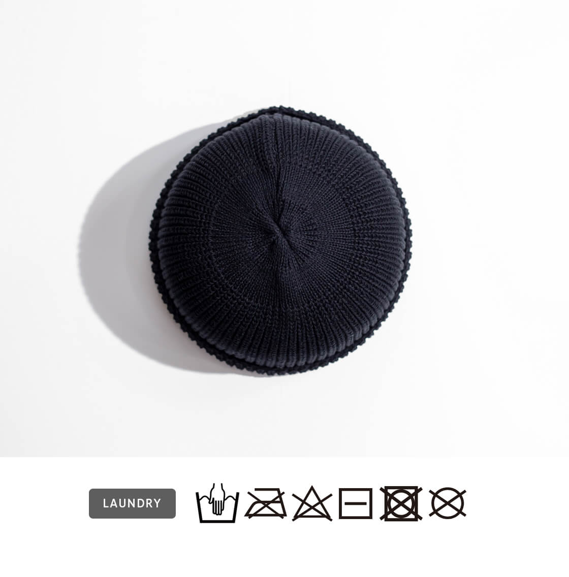 やや厚みのあるミドルゲージで編まれたリブは柔らかく、程よい深さに設計された丸型シルエットも特徴です。