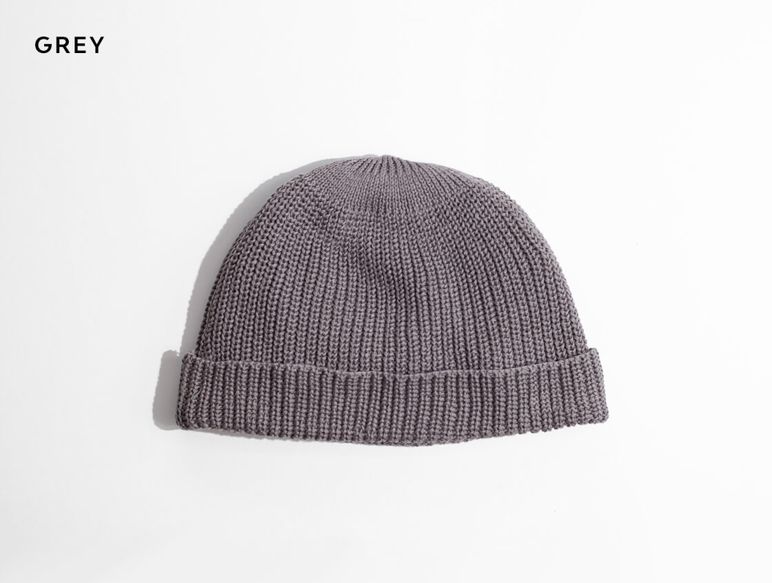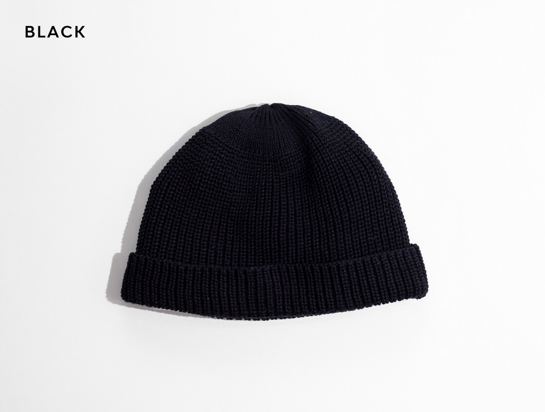 緩めの片畦編みで編み立てられ、ストレスのない被り心地が魅力のコットンワッチキャップです。