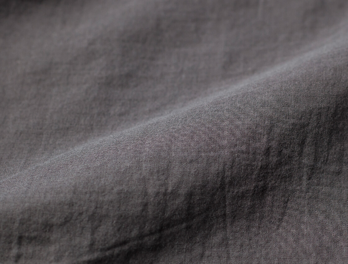 製品染めによる奥行きある表情も加わり、快適さと雰囲気を兼ね備えた一枚です。