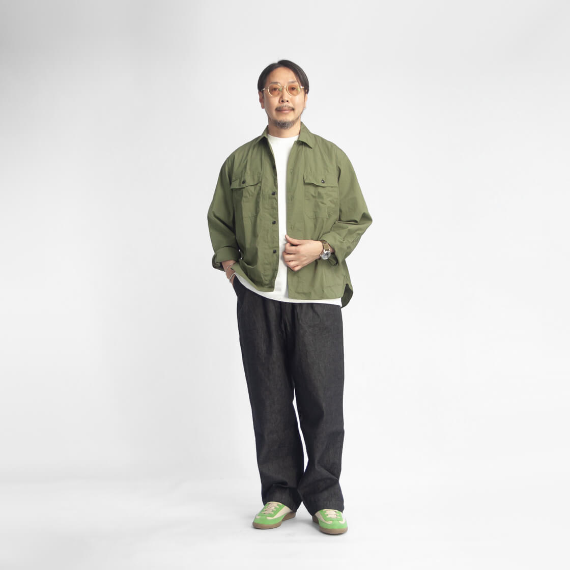 素材にはスウェーデン軍のアンダーウェアをモチーフにしたヘビー鹿の子を採用。