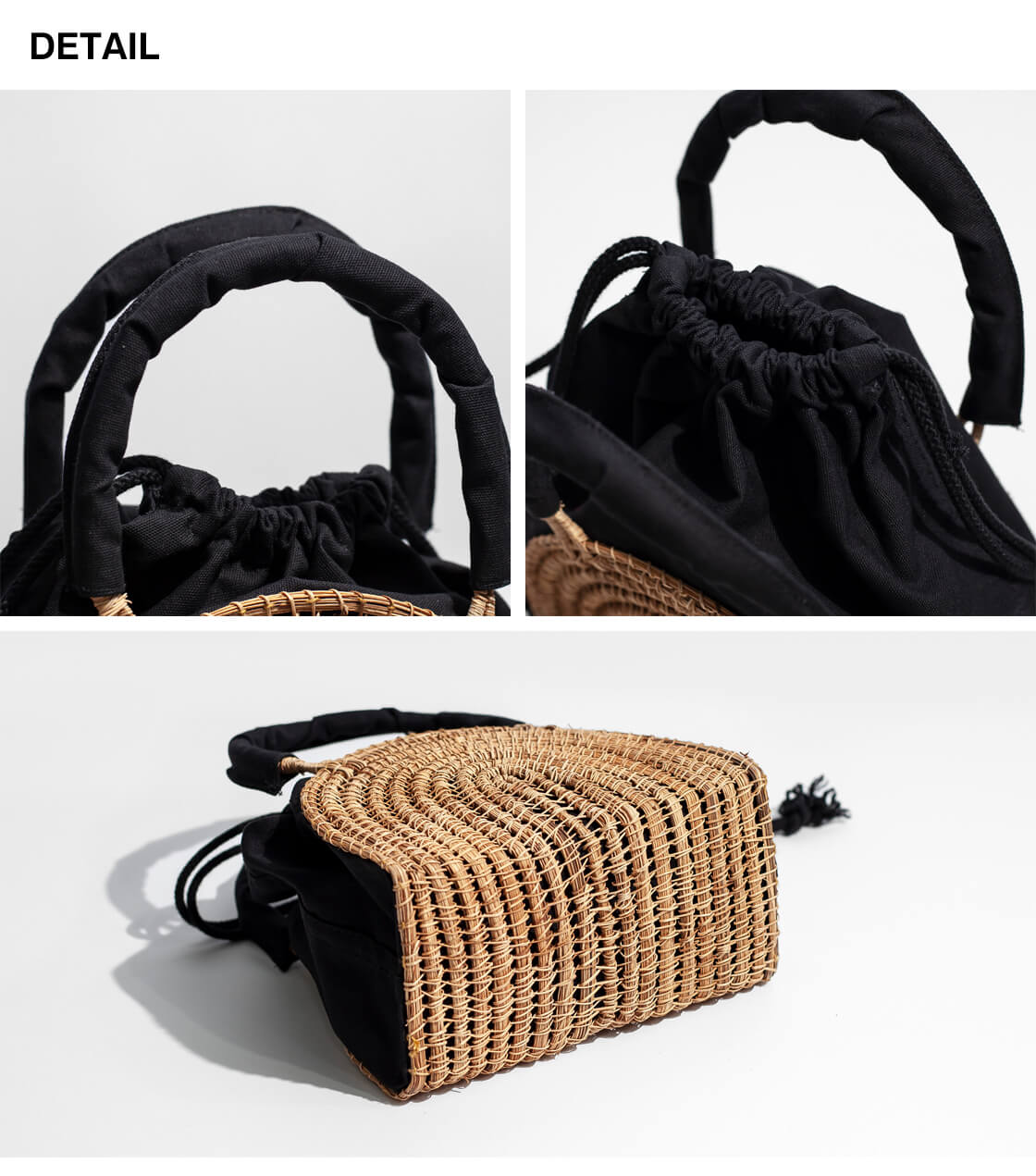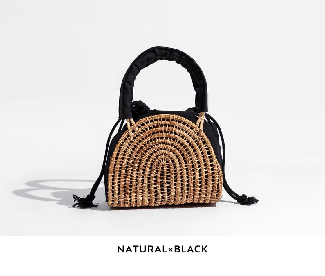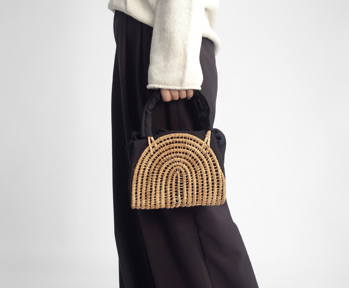 TARANGOからヤシの木の繊維で編まれた巾着タイプの小ぶりなかごバッグをご紹介。