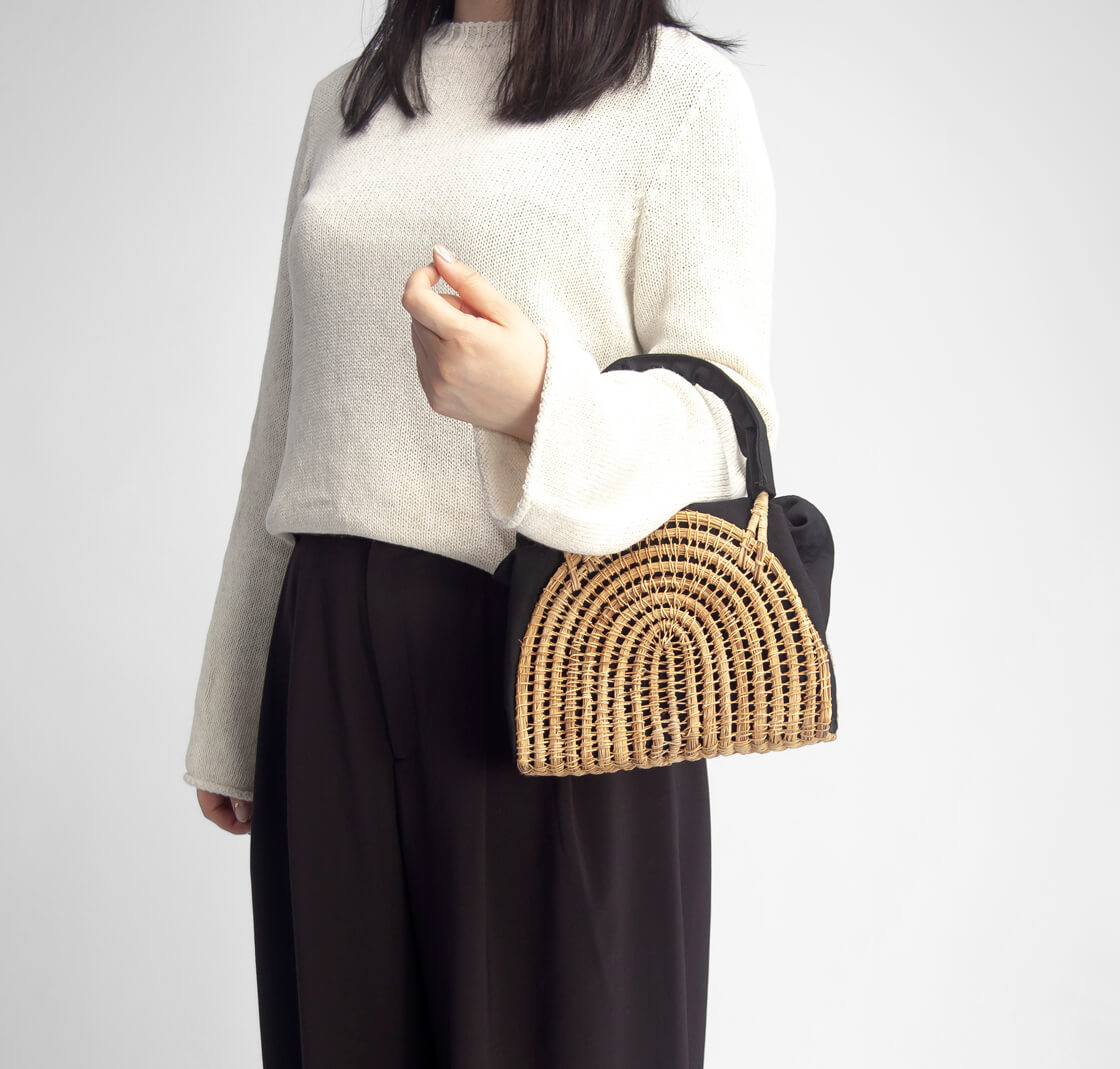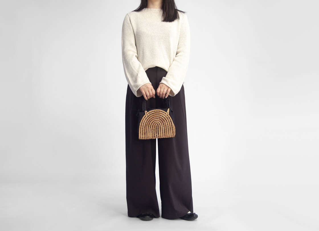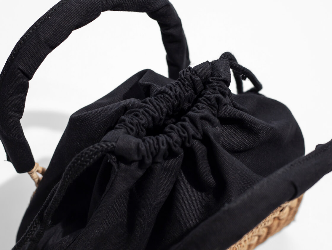 TARANGOからヤシの木の繊維で編まれた巾着タイプの小ぶりなかごバッグをご紹介。