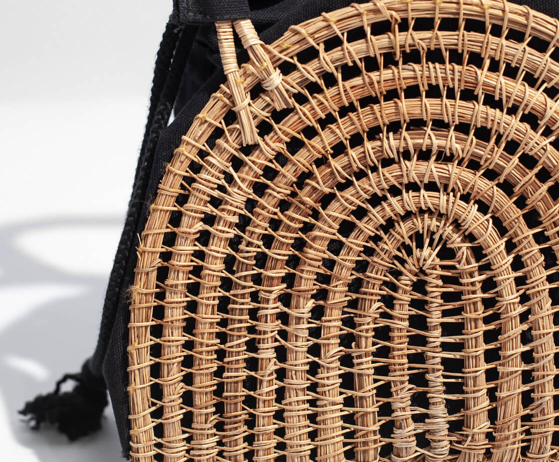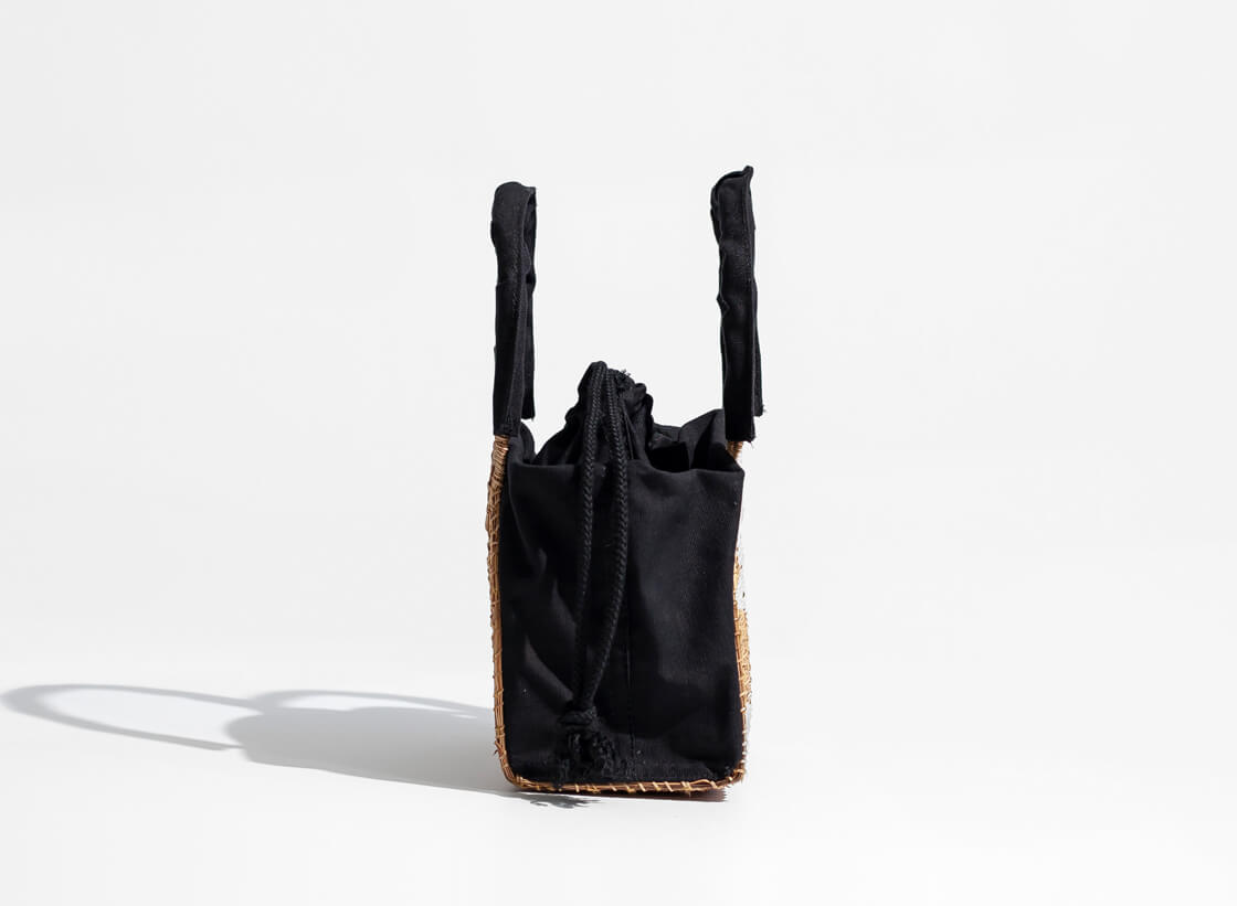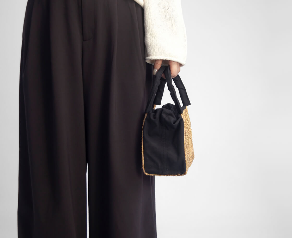 1点1点手作業で編まれたパームファイバーに、内側は厚みのあるコットンキャンバスを採用。