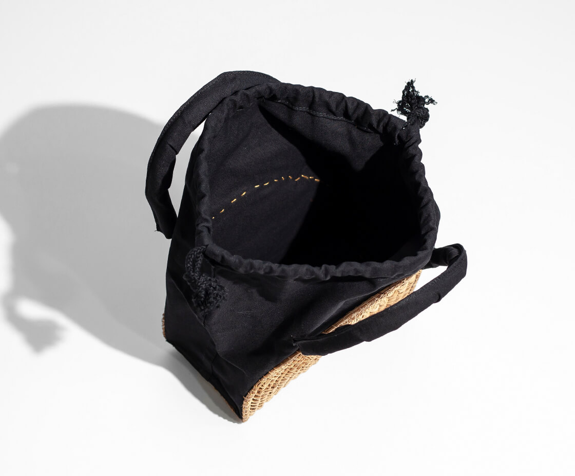 TARANGOからヤシの木の繊維で編まれた巾着タイプの小ぶりなかごバッグをご紹介。 1点1点手作業で編まれたパームファイバーに、内側は厚みのあるコットンキャンバスを採用。 巾着仕様の開口で中身をしっかり目隠しし、安心感のある作りです。 丸さとスクエアが同居するフォルムで、甘さを抑えたバランス。 コンパクトながら広めのマチを備え、350mlボトルや長財布も収まる実用的なサイズ感です。 パームファイバーは軽量で強度と柔軟性を兼ね備えた、経年変化も魅力の素材。 ハンドメイドならではのホッコリ感だけでなく、バングラディシュの女性の経済的自立を支える意味も持つ一点です。