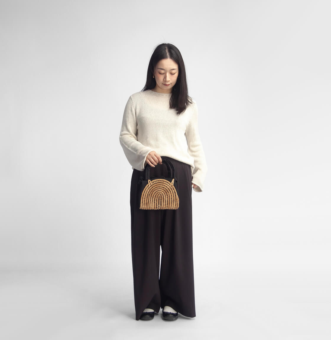 ![]() TARANGO / Palm Fiber Half-Round Drawstring Basket Bag ![]() 1つ1つ手作業で作られた、ヤシの木の繊維で編まれた巾着タイプのかごバッグ。小振りでかわいい見た目に反して、広めのマチでしっかり容量なのも魅力。 ![]() TARANGO(タランゴ) TARANGO(タランゴ)社は1989年にバングラディッシュの首都、ダッカで創設された非営利のNGO-NPO団体。そのビジョンは、女性の貧困を救うためには経済的自立が必要不可欠という考えかたに基づき、貧富の差が激しいバングラディッシュにおける女性の地位向上を狙い、様々な分野で彼女らに技術を身につけてもらい、自立、スキルアップを促し、さらに教育も受けられるようにして、発展途上国全体の経済を活性化させるというもの。TARANGO社のジュートバッグ生産はその核となる活動の一つで、仕事を求め首都ダッカへの集中が広がる中、格差の広がる地方の貧しい女性に生産技術、工芸、販売を促し、フェアトレードによって対等な報酬を支払い彼女らの生活基準を押し上げていくというものです。 ![]() 丸みとスクエアが同居するフォルムで愛らしさがありながら甘すぎないかごバッグ。 ヤシの木の繊維を用いて、1点1点手作業で製作されるTARANGOの巾着タイプのかごバッグ。丸みとスクエアが同居するフォルムは愛らしさを感じさせながらも、ざっくりとしたラウンド状の編み柄とブラックのキャンバス生地の組み合わせによって、甘さを抑えた大人の表情に仕上がっています。コンパクトな見た目に反して、広めに設けられたマチがしっかりと容量を確保。収納部にはやや厚みのあるコットンキャンバス生地を採用し、安定感のある使い心地も魅力です。350mlのペットボトルが収まる高さがあり、長財布は横向きに収納可能。財布やスマートフォン、化粧品やポーチなど、お出かけに必要な荷物は無理なく収まります。ハンドルは腕に掛けられる程よい長さで、さっと持てて手が空くのも嬉しいポイント。持つだけで装いに軽やかな季節感を添え、春夏のスタイリングをさりげなく引き立ててくれる一品です。均整が取れているわけではなく、ひとつひとつ個性のあるハンドメイドならではのホッコリ感と、バングラディシュの女性の経済的自立を支えるためのフェアトレードというのもポイントになってくるかと思います。 ![]() 強度と柔軟性に優れていながら軽量なパームファイバー。 本体に用いている素材は、ヤシの木が原料の、強度と柔軟性に優れていながら軽量なPalmfiber(パームファイバー)。Palmfiberの産地はバングラデッシュの中北部の要衝の街、Bogura。Bogura近辺はバングラデッシュでも特にヤシの木が多い場所で、道端に普通に生い茂っています。Palm = ヤシ、普通ヤシというとココナツヤシを思い浮かべますが、バングラデッシュで多いのはデーツが取れるナツメヤシとPalmfiberの原料になるオウギヤシ(俗称パルミラヤシ)。そのヤシの、幹と葉ができる枝の付け根部分をPalmfiberの材料として使います。切り取った材料の枝部分は2週間から1ヶ月ほど水に付けて柔らかくしておき、取り出してから叩いて、ヤシ原木をほぐします。Palmfiberの完成品の色に個体差があるのは材料を水に付けておく期間に大きく作用されるもので、水につける期間はその時の天候によって変わります。また、Palmfiberは時間がたつにつれベージュが濃くなっていき、その経年変化も楽しめます。 ![]() 中身の目隠しになる巾着タイプの開口。 ![]() 350mlのペットボトルが何とか入る高さで、長財布やポーチなどお出かけに必要な荷物は入る容量。 ![]() ![]() ![]() ![]() ![]() ![]() ![]() ![]() ※キャンバス生地に厚みがあるので、巾着の口は完全には閉じない仕様になっております。中身の目隠しとしてお考え下さい。 |