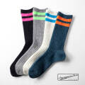 「Anonymousism(アノニマスイズム)」から、保温性・保湿性に優れたカシミヤを使用したクルーソックスをご紹介。 素材は明治20年に創業した歴史ある毛織物メーカー「深喜毛織」で紡績されたウールにカシミヤをブレンドした糸。 深喜毛織は日本で唯一原料の調合からミュール紡績・製織・染色整理までの 一貫工場としてカシミヤ製品を製造。 また日本の毛織物メーカーとして唯一カシミヤ製造業者の国際団体CCMI(カシミヤ及びキャメル製造業者協会)に加盟しており、その質の高さはお墨付き。 チクチク感のない柔らかなウールに"繊維の宝石"とも呼ばれるカシミヤをブレンドすることで上品な風合いに加え、なめらかな手触りや高い保温性を兼ね備えています。 またナイロンも含まれているので耐久性も問題ありません。 ネオンカラーのラインで普段のコーディネートにも上質なカシミヤを取り入れやすいデザインとなっています。