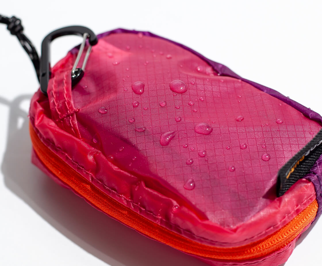 COBMASTERから軽量で機能性に優れたコーデュラナイロン製ミニポーチをご紹介。 大きく開くファスナー仕様に加え、内部にはカードが収まるポケットを配置。 カラビナ付きでバッグやベルトループ等に取り付け可能な作りです。 サイズはコンパクトでかさばらず、必要な小物をまとめて持ち運べるバランス。 日常から旅先まで使いやすい設計です。 生地は30Dリップストップのコーデュラシルナイロンを採用。 軽量で柔らかく、耐久性に優れつつ防水・撥水性も備えて扱いやすい一点です。