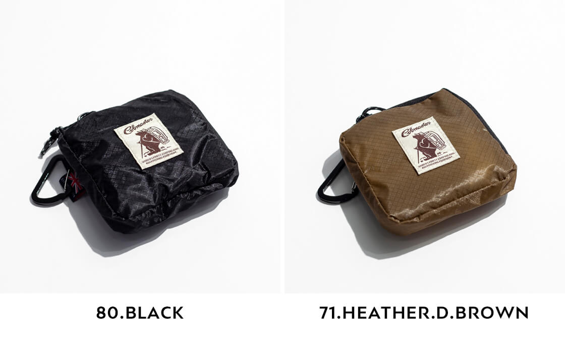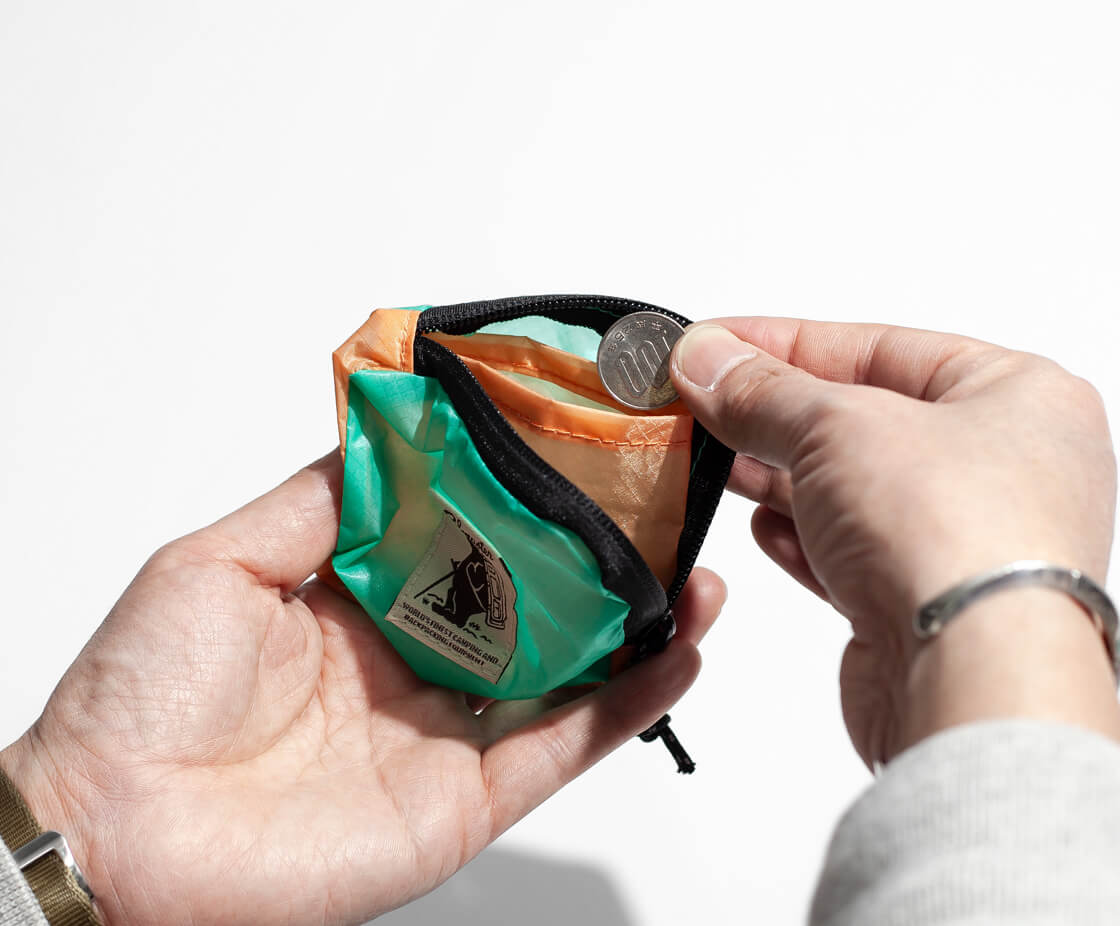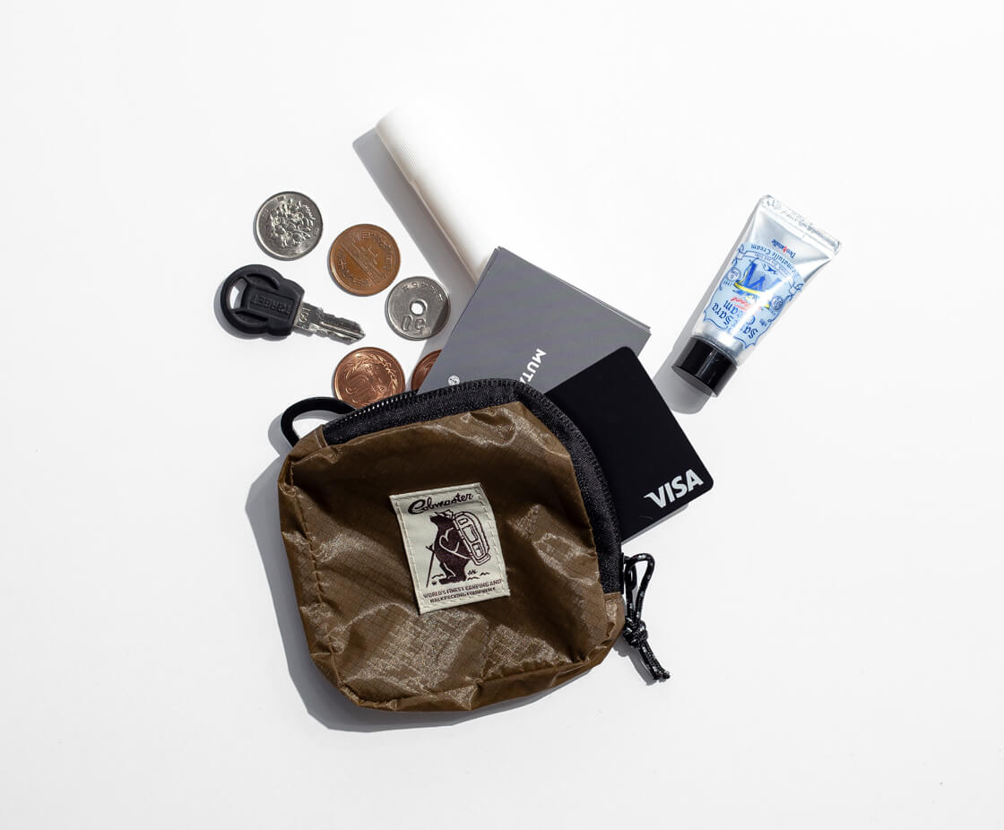 内部には仕切りとしても機能するコインポケットを備え、カラビナ付きで携帯性にも優れています。