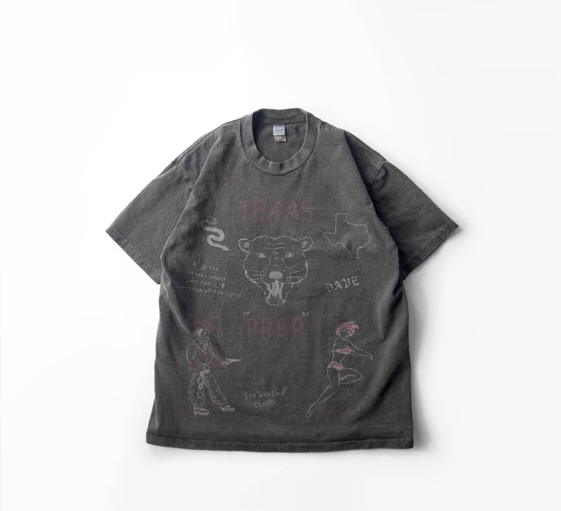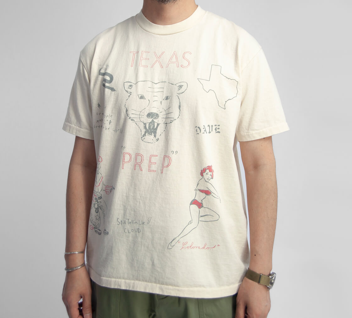 Unison Specialから手書きモチーフを大胆に配したヴィンテージ感のあるプリントTシャツをご紹介。