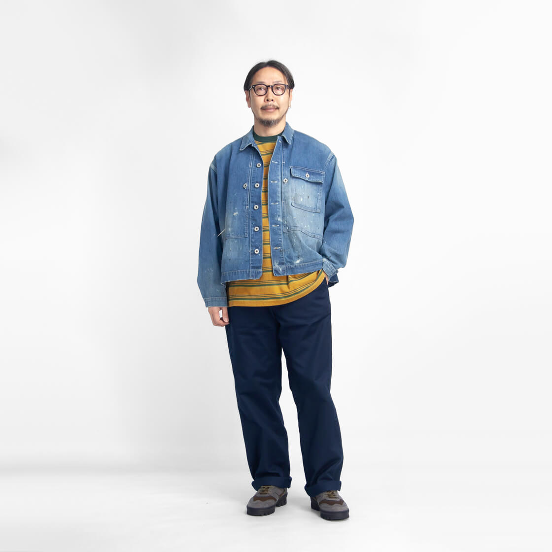M / 着丈71 / 身幅60 / 肩幅57 / 袖丈61 モデル着用 170cm/62kgでMサイズ 素材 綿100% カラー展開 マスタード、ブラウン、ブルー 生産国 日本 モデル着用コメント Mサイズを着用しました。身幅や肩幅など全体的にゆったりとしたオーバー目なシルエットです。肩がドロップしますが、袖口は絞りが効いていて止まるので袖の長さは問題ありません。僕くらいの体型の方で、もっとオーバーに着用したい場合はLサイズでもいいかなと思いますが、元々大き目のサイズなので個人的にはサイズMで十分です。 スタッフ着用コメント Lサイズを着用しました。全体的にゆったりなラフな着用感でした。肩が落ちるルーズなシルエットですが、首元は広めではないのでだらしなさはありません。着丈は長すぎる感じはありません。Mサイズでも身幅・肩幅はゆとりを持って着用出来ますが、個人的には全体のバランス的にLサイズがいいかなという感じです。 |