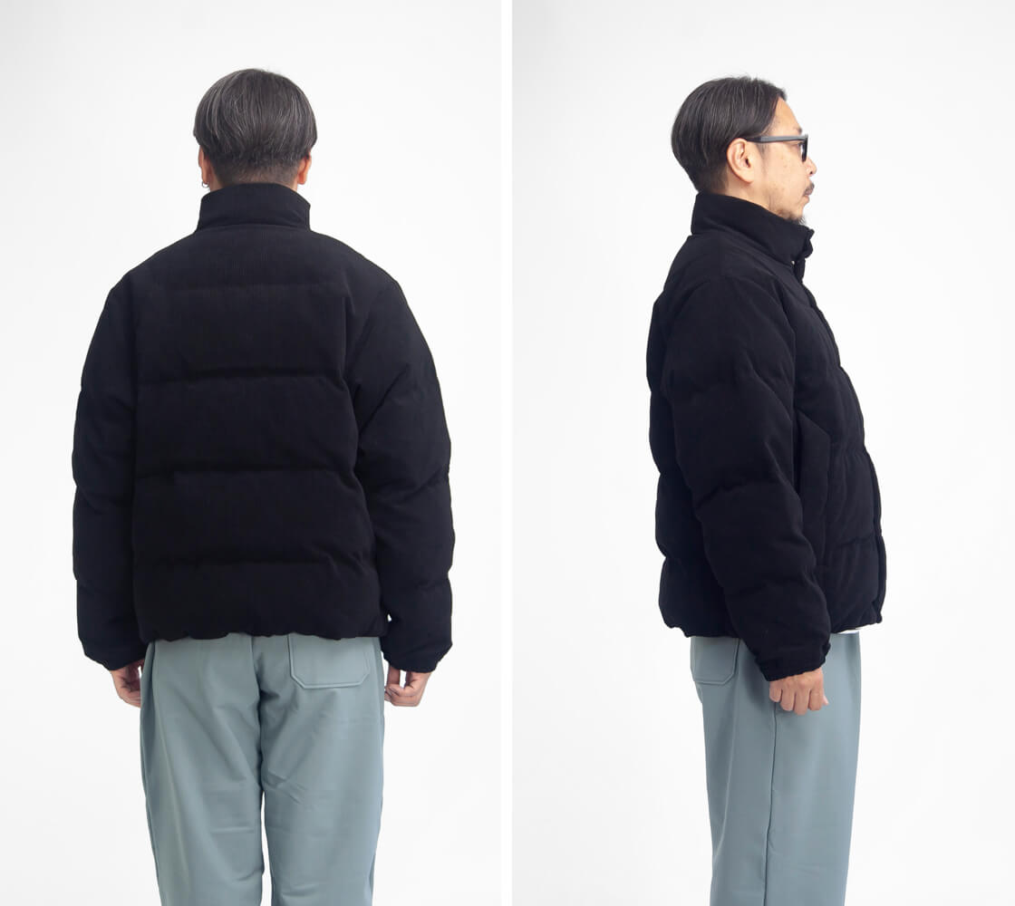 M / 着丈67 / 身幅60 / 肩幅48 / 袖丈65 モデル着用 170cm/62kgでMサイズ 素材 表地(ポリエステル73% 複合繊維27%) カラー展開 ブラック、アイボリー、キャメル 生産国 ベトナム モデル着用コメント Mサイズを着用しました。ダウンのボリューム感はありますが、インナーにスウェットを着込めるぐらいの余裕も十分あります。表地がコーデュロイなのでダウンアウターとしては多少重みはあるものの、重アウターとしては程よい重みです。着丈についてはヒップ上部にかかるくらいのショート丈。僕の場合Mサイズでちょうどよいサイズ感です。 スタッフ着用コメント Lサイズを着用しました。全体的にゆったりとした着心地でフロントを閉めても余裕があります。ある程度厚みのあるインナーを着込んでも窮屈感はありません。見た目にボリュームがあるので、ボリューム感に抵抗があるのであればMサイズの方が見た目にはコンパクトに着用出来ます。僕の体型でMサイズでもLサイズでも着用できたので、体つきの良い方はLサイズを選ばれると良いかと思います。 |