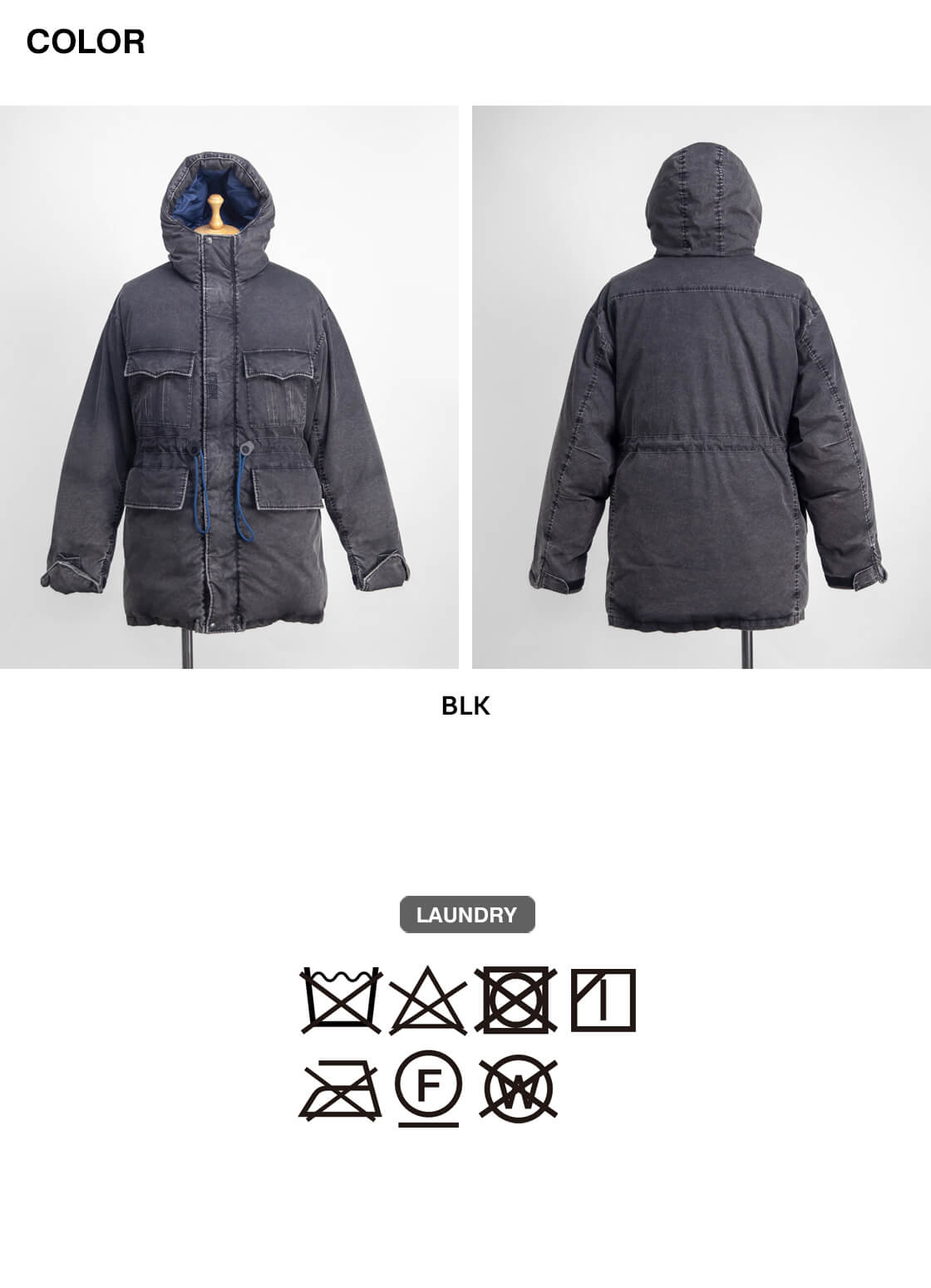 S / 着丈79 / 身幅61 / 肩幅56 / 袖丈59 モデル着用 170cm/62kgでMサイズ 素材 本体(綿70% ポリエステル30%) カラー展開 ブラック 生産国 中国 モデル着用コメント Mサイズを着用しました。ダウンのボリューム感はありますが、インナーに厚手のニットやスウェットも着込めるぐらいの余裕もあります。肩まわりも窮屈感などもなく、腕周りもダウンによる軽めのフィットはありますが不快な感じもなくノンストレスです。着丈についてはヒップも半分以上隠れる程。僕の場合ゆとりを持たせるならMサイズ、ジャストサイズ気味に合わせるならSサイズといった感じです。 スタッフ着用コメント Lサイズを着用しました。全体的にゆったりとした着心地でフロントを閉めても余裕が十分あります。ある程度厚みのあるインナーを着込んでも窮屈感はありません。着丈はヒップが隠れるぐらいです。オーバーなサイズ感に抵抗があるのであればMサイズの方が見た目にはコンパクトに着用出来ます。僕の体型でMサイズでもLサイズでも抵抗なく着用できたので、体つきの良い方はLサイズを選ばれると良いかと思います。 |