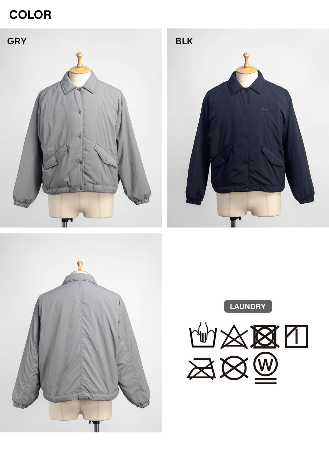 W.SMALL / 着丈後(前) 62(57) / 身幅63 / 肩幅53 / 袖丈53 モデル着用 155cmでW.SMALLサイズ 素材 表地(ナイロン100%) カラー展開 ブラック、グレー 生産国 日本 モデル着用コメント 全体的にゆったりとしているので、インナーにニットやスウェットなども着込んでも余裕のあるサイズ感です。着丈は後ろが長くなっているのでヒップが半分隠れるほどで、袖丈はやや長めですが袖口はゴムとスナップボタンで固定出来るので特に問題はありません。すっきりと合わせるならSサイズ、オーバーサイズで着用したい場合はMサイズでも問題なく着用できるサイズ感です。 |