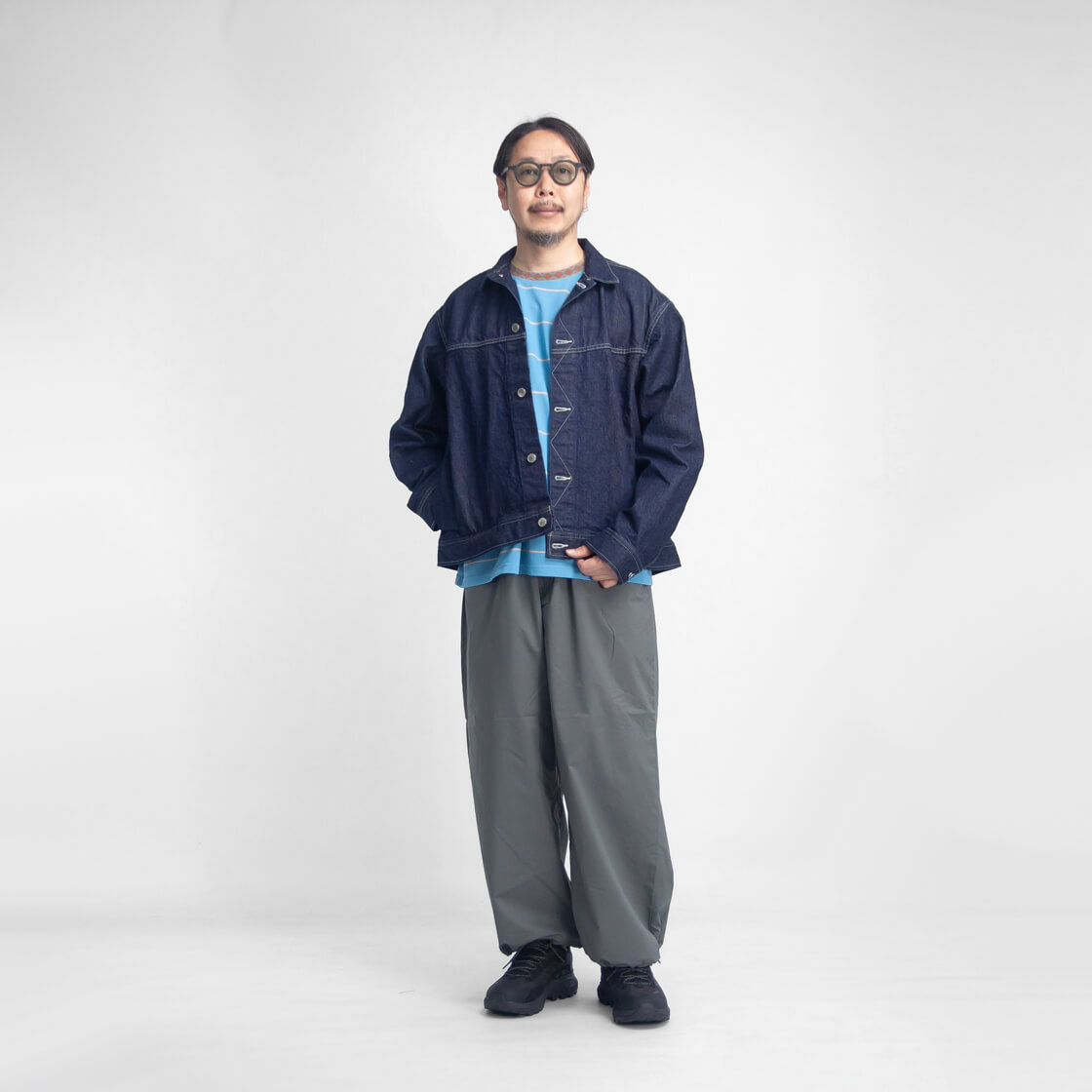 ![]() NANGA - RINGER COLLAR PANEL L/S TEE ![]() ジオメトリックなネック部分のリブが印象的な、カラッと清涼なボーダーロンTEE。 ![]() NANGA(ナンガ) ヒマラヤ山脈にそびえる標高8126mの「ナンガ・パルバット」、別名「人喰い山」と恐れられるこの山から名をとった「NANGA」は、1994年に滋賀県米原市で創業したダウンメーカー。前身である布団メーカーの技術とノウハウを引き継ぎ、NANGAは30年に渡って成長してきました。羽毛の吹込み、縫製、メンテナンスに至るまで、ひとつひとつの工程を丁寧に行うことで、安心安全な製品を作り上げ、その製品力によりNANGAのダウン製品は世界へと羽ばたいています。 ![]() 配色とディテールで魅せる、存在感のあるボーダーロンT。 NANGAが、パキスタンやネパール、インドで春の訪れを祝う"ホーリー祭"に着想を得て展開するカプセルコレクション「HOLI(ホーリー)」。アウトドアブランドならではの機能性をベースにしながら、ファッションとしての完成度も高く、日常のカジュアルスタイルに自然と溶け込むラインです。その中の一着、「RINGER COLLAR PANEL L/S TEE(リンガーカラーパネルロングスリーブTシャツ)」は、ゆったりとしたボックスシルエットが特徴。身頃は広めに設計され、アームホールもややゆとりのある筒袖仕様で、肩の力を抜いて着られるリラックス感のある佇まい。首元には、NANGAオリジナルで編み立てたダイヤ柄リブを採用。この首元が印象的なアクセントとなり、インナー使いの際にもスタイリングに奥行きを与えてくれます。そして、絶妙な配色で構成されたボーダー柄や、背面に施されたHOLIお馴染みの刺繍など、オリジナリティ溢れる一着に仕上がっています。 ![]() ドライ感と軽さと速乾性で快適さが続く、機能派鹿の子素材。 本体に使用しているのは、ポリエステル素材の鹿の子生地。表面に細かな凹凸を持つ独特の編み構造により、肌への接地面が少なく、さらりとしたドライなタッチが特徴です。通気性にも優れているため、蒸れにくく、春から夏への季節の変わり目にも快適な着用感をキープ。さらにポリエステルならではの軽さと速乾性も備えており、汗ばむシーンでもストレスを感じにくいのも魅力。 ![]() ![]() 身長170cm、体重62kgの男性がMサイズ着用。 ![]() ![]() ![]() 身長170cm、体重62kgの男性がMサイズ着用。