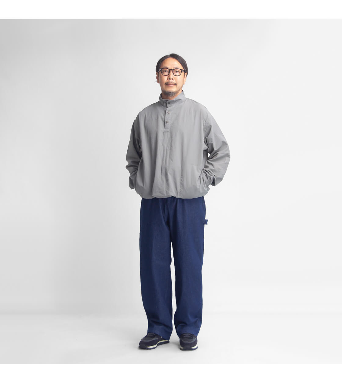 ゆったりした太めのシルエットに、程よくテーパードをかけて野暮ったくないシルエット。