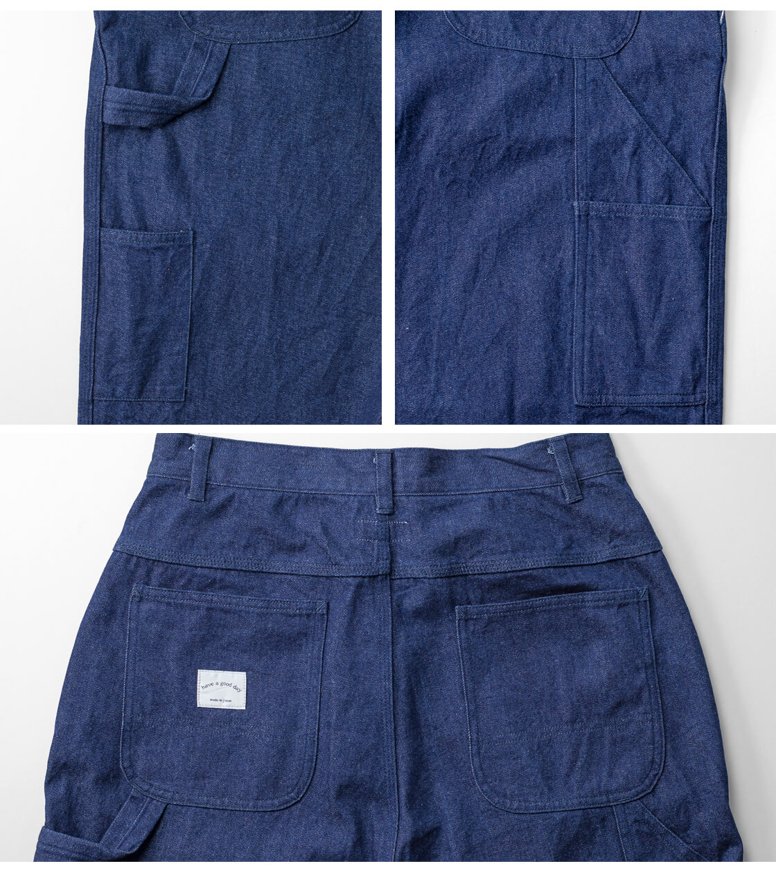 ■ 商品説明 have a good day(ハブアグッドデイ)より、インディゴデニムと生成りへリンボーンの2種類の生地を用いたペインターパンツをご紹介。