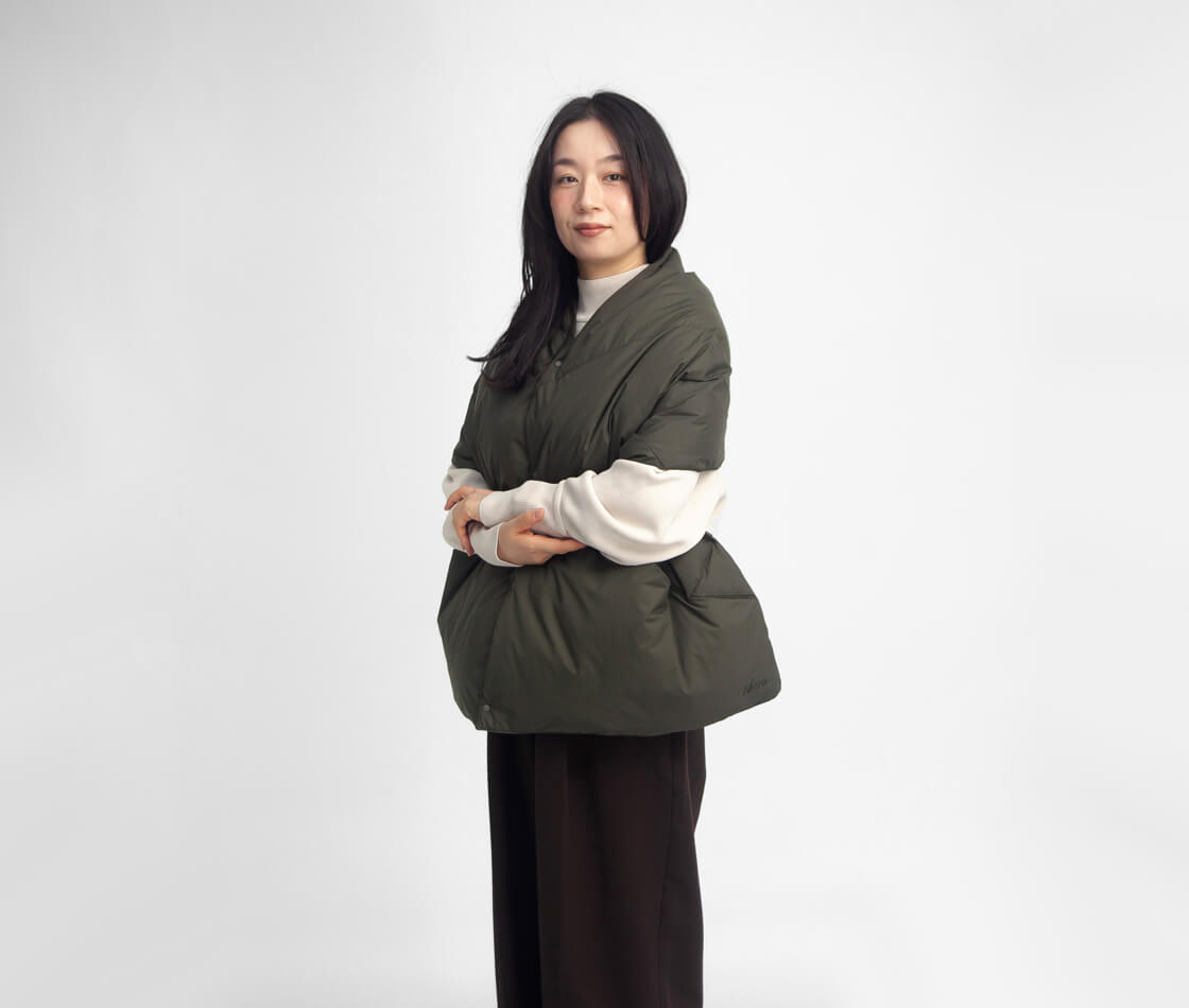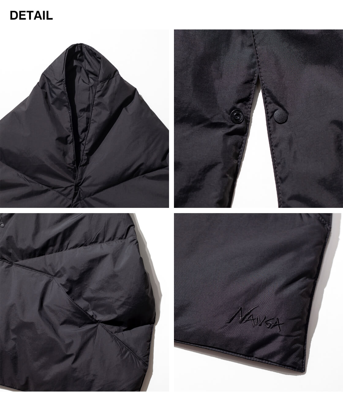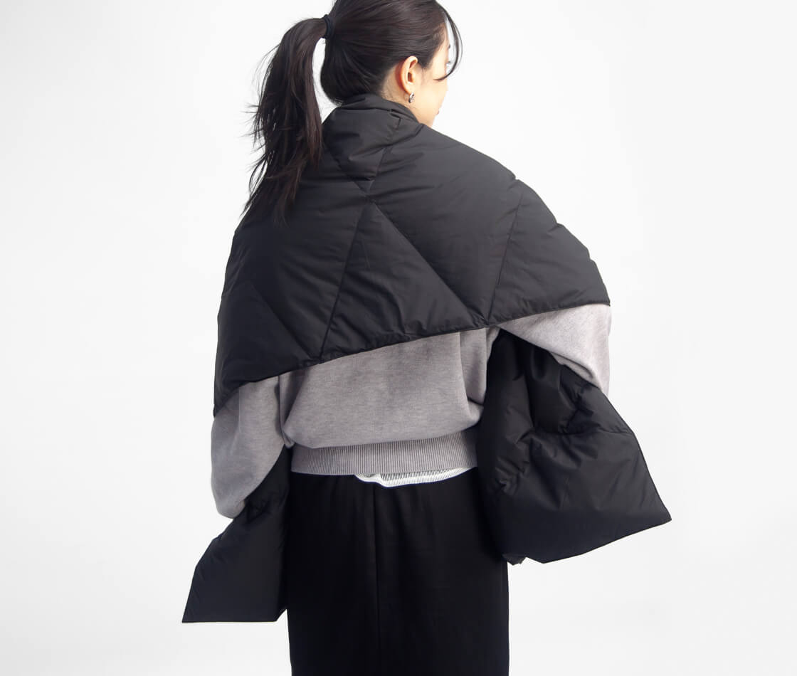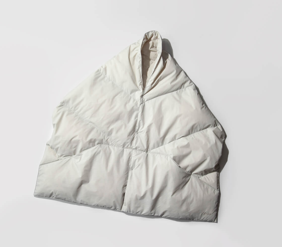 NANGAから、軽くて暖かい大判サイズのダウンポンチョマフラーをご紹介。