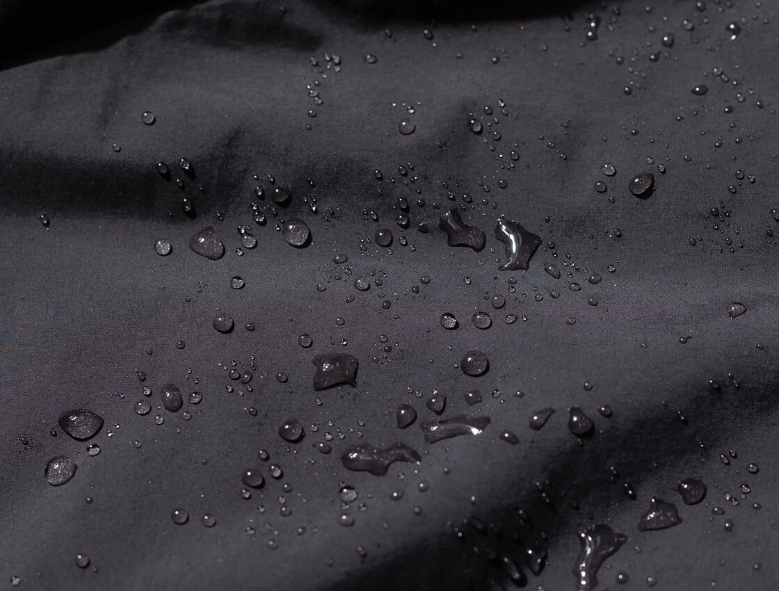 高密度ナイロンの表地は撥水性に優れ、小雨程度ならサッと払うだけでOK。