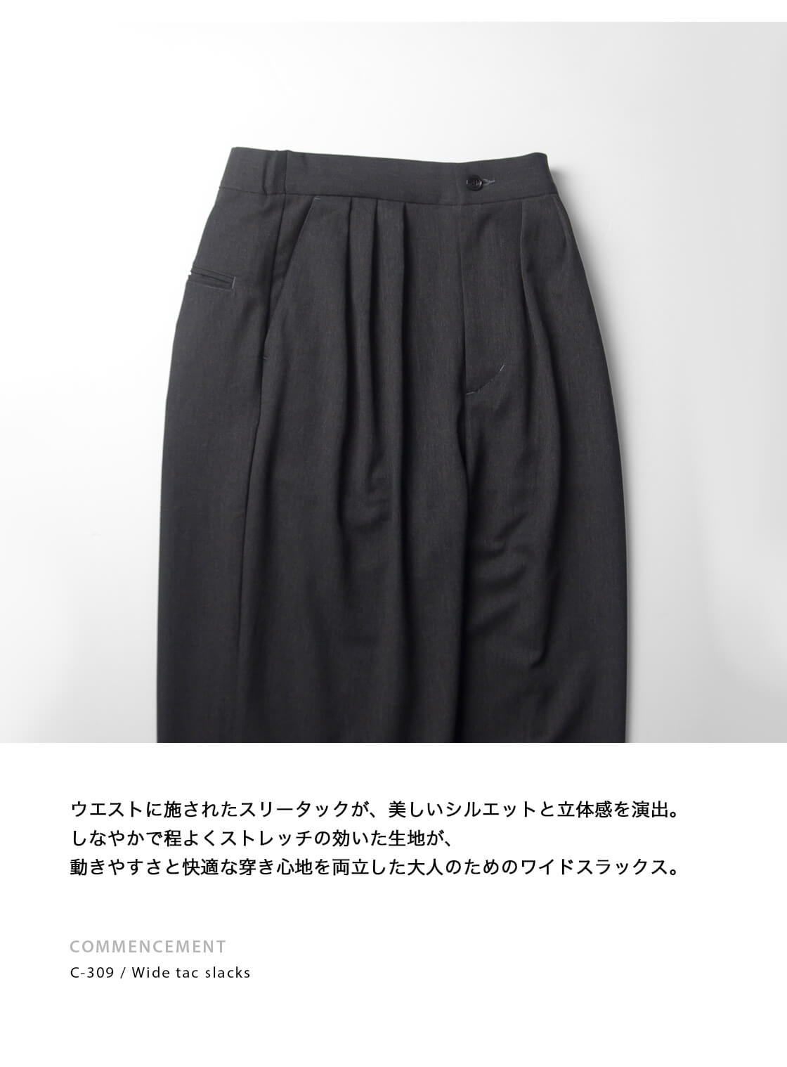 | 製品名 | COMMENCEMENT コメンスメント ワイドパンツ スリータック 日本製 C-309 レディース |