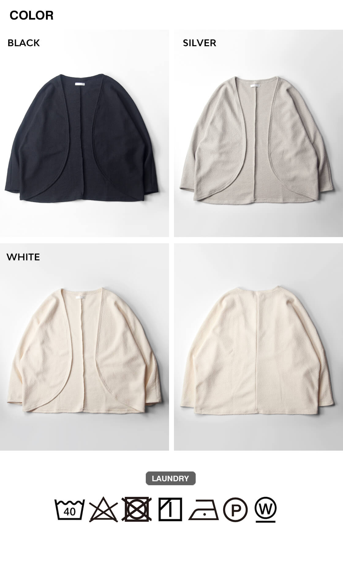 ブランド Commencement サイズ FREE / 着丈62 / 身幅66 / 袖丈76 サイズの計測についてはコチラから!モデル着用 155cmでFREEサイズ 素材 綿69% ポリエステル31% カラー展開 ブラック、シルバー、ホワイト 生産国 日本 モデル着用コメント 身幅や肩回りもにゆとりがあり、インナーにロンTや半袖を着用してもごわつくことなく羽織れます。前を留めない仕様なので脱ぎ着もしやすく、必要な時に気軽に羽織れるのが魅力です。着丈は後ろがほぼヒップが隠れるほどと長めとなっていますが、前身頃から後ろにかけての裾のラインがカーブしているで、だらしなく見えずに着用できます。 |