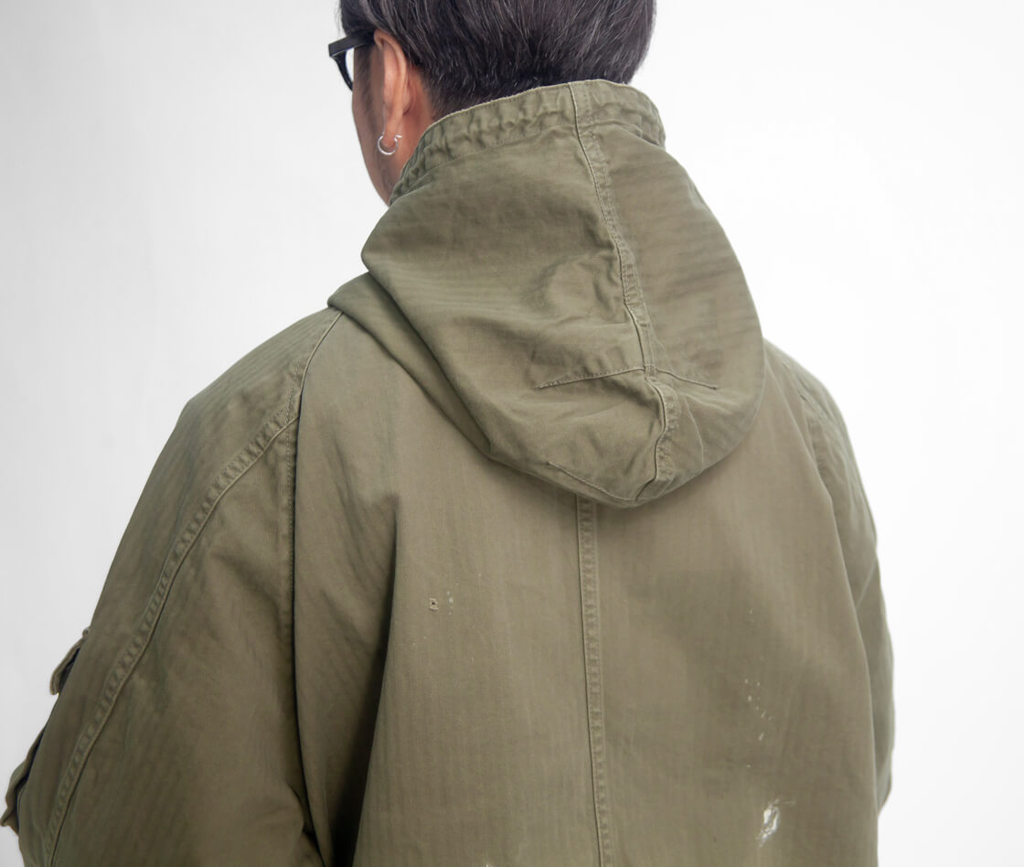 H.UNITから、米軍M-51モッズコートをショート丈に再構築した「HBT hooded jacket」をご紹介。