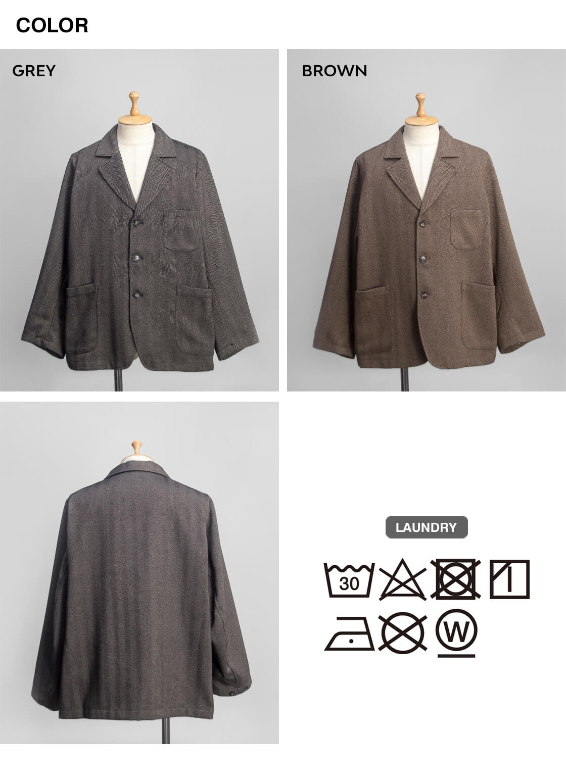 ![]() H.UNIT - TECHTWEED HBT jacket ![]() クラシックで重厚感のある表情なのに、機能は現代的なテックツイードを用いた3Bジャケット。 見た目はクラシック、性能はモダンなテックツイードを用いたH.UNITの3つボタンジャケット「TECHTWEED HBT jacket」。ヘリンボーンツイードの織り柄から漂ってくるのは、英国調の重厚さ。このクラシックな生地表情を持つシンプルな3つボタン・3つポケットデザインのジャケットですが、サイズ感とシルエット・テック素材により数あるテーラードジャケットとは全然違った雰囲気に仕上がっているのがH.UNITらしい。身頃はコットンスレキ、袖裏は滑りの良いポリエステルタフタを用いた総裏地仕様で、暖かさと袖通しの良さもポイントに。 ![]() H.UNIT(エイチユニット) 岡山県倉敷市児島と言えば、世界的にも有名なジーンズの産地。そこに拠を構え、" 児島らしく、児島らしからぬ"をテーマとしてプロダクトを展開しているH.UNIT。独自の観点により、ヴィンテージらしさと現代らしさを融合させたアイテムを"倉敷児島"特有の縫製、加工技術、手作業を織り交ぜカスタマイズさせた服作りを提案しています。 ![]() たっぷりとした身幅、袖に丸みあるフォルムを生み出せるヌケ感のあるシルエット。 かなりゆったりとしたシルエットは、肩もしっかり落ちてカーディガンに近い印象。広めのアームホール・袖幅は袖口のボタンを留めて絞りを効かせることで、腕に丸みのあるフォルムを生み出します。このたっぷりとしたサイズによるヌケ感と、ラペルジャケットのキチンと感が融合した独特の雰囲気を纏っています。 ![]() 身頃はコットンのスレキ生地、袖裏はポリエステルタフタ生地による総裏地仕様。 ![]() 英国クラシックな表情なのに、イージーケアで現代的なテックツイード。 クラシックで素朴・重厚感のあるヘリンボーン織りのウールツイードそのものの表情なのに、機能は現代的なTECHTWEED(テックツイード)。世界有数のウール産地である尾州(びしゅう)で作られたウールの表情を持ったポリエステル素材です。 ウール原料を分析して100%ポリエステルでつくったテックツイード(R)は、ウールでは表現できなかった軽さやシワになりにくさを備え、チクチクしないといったメリットがあります。さらに家庭で洗濯できるウォッシャブルだからケアもかんたん。見た目が開いた魚の骨に似ていることからついたヘリンボーンは「右上がりの綾織り(右綾)」と「左上がりの綾織り(左綾)」を交互に組み合わせたV字状の織り柄が特徴。秋冬らしい英国クラシックな季節感を演出できて、ウールのような縮みや歪みが出にくく、シワにもなりにくいという機能素材なのです。 ![]() ![]() 身長170cm、体重62kgの男性が2サイズ着用。