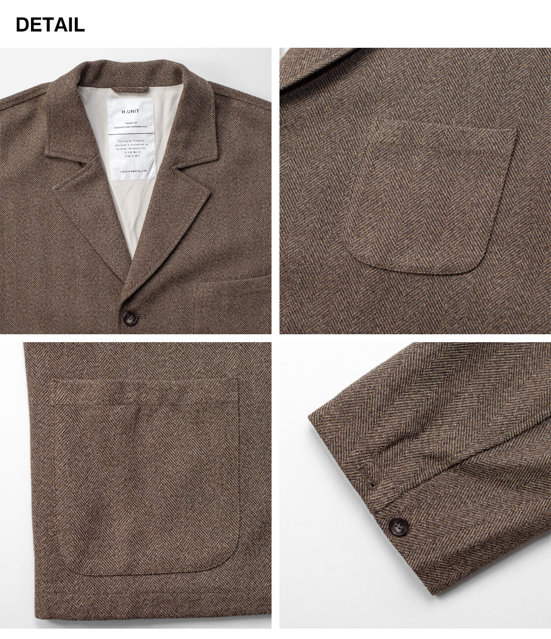 | 製品名 | H.UNIT エイチユニット ヘリンボーン テックツイード テーラードジャケット 日本製 セットアップ対応 メンズ |