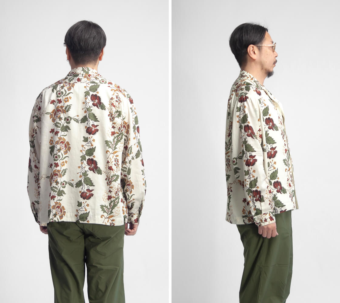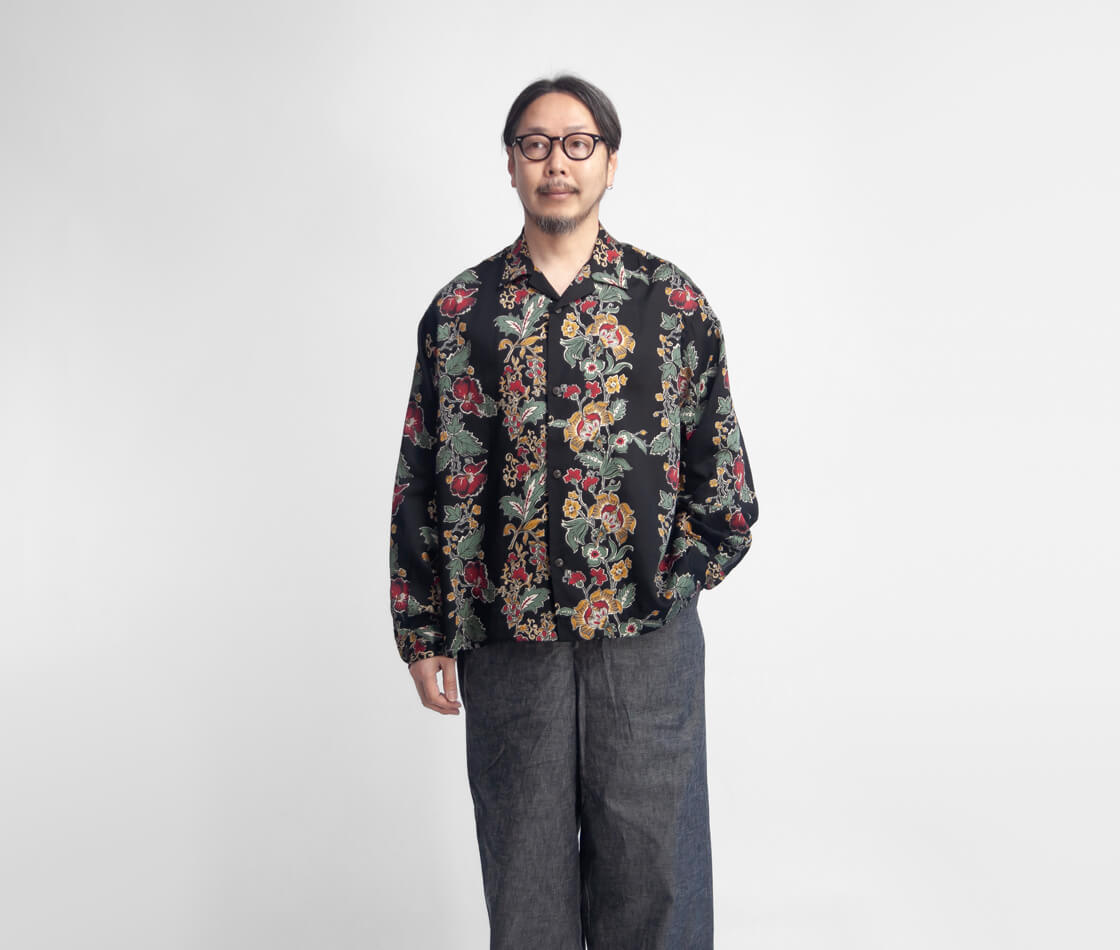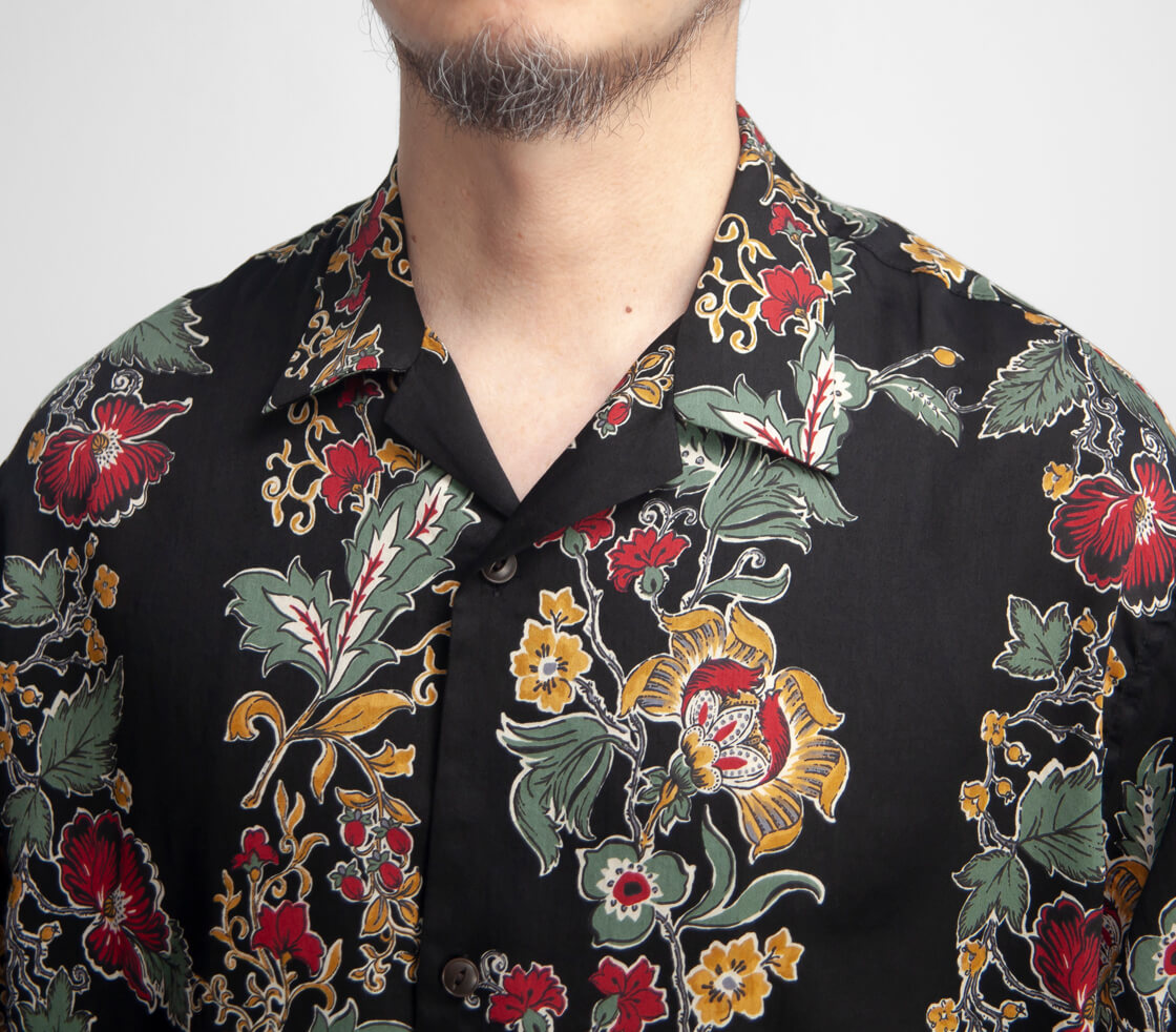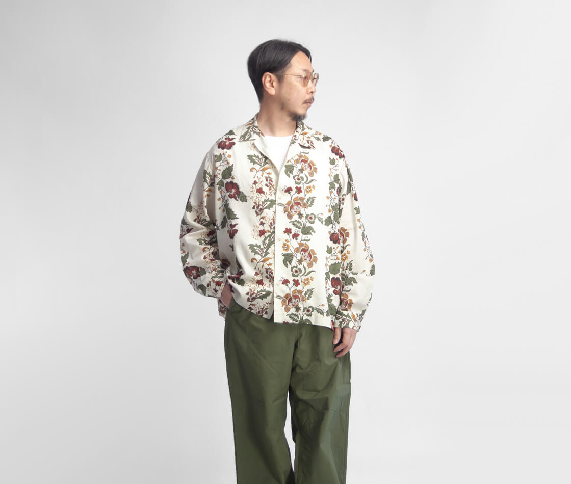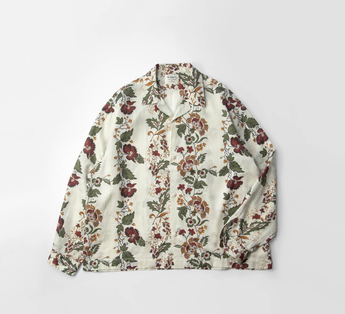 H.UNITから、アールヌーボー調の大胆な花柄が映えるオープンカラーシャツをご紹介。