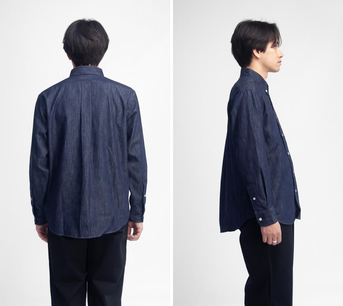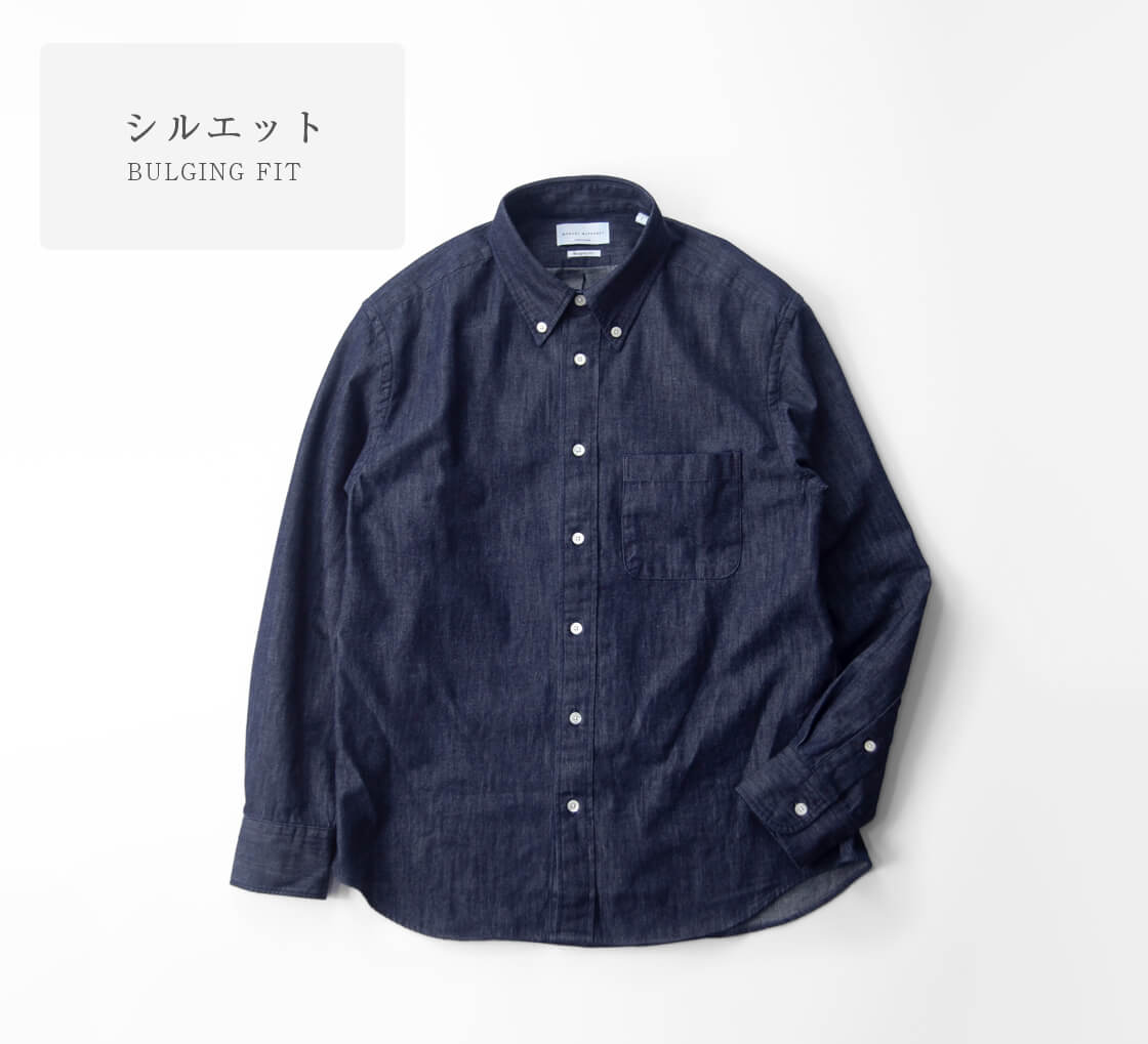 MANUAL ALPHABETからクラシックなゆとりを提案するBulging Fitのボタンダウンデニムシャツをご紹介。