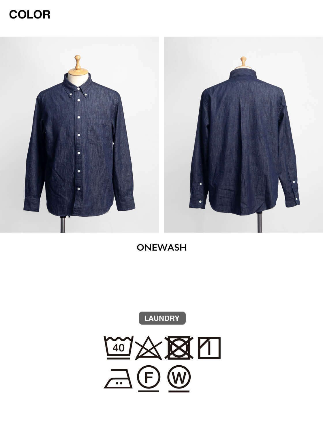 | 製品名 | MANUAL ALPHABET マニュアルアルファベット デニムシャツ ONEWASH Bulging Fit ボタンダウン ルーズフィット 日本製 メンズ |