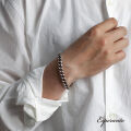 esperantoのシルバー925チェーンブレスレットは、シンプルながら一本で存在感を放つボリューム感が魅力のアクセサリーです。 素材にはスターリングシルバー(シルバー925)を使用し、アンティーク感を演出する燻し加工を施しているため、陰影が際立ち奥行きのある表情を楽しめます。 使い込むことで燻し加工が徐々に取れ、輝きが増していく経年変化も魅力のひとつ。 リングに通して装着し、小ぶりなチャームが程よいアクセントになります。 サイズは18.5cmで、手首周り15〜17cm程度の方にフィット。 ボリュームのあるチェーンデザインは薄着の季節にも映え、コーディネートの主役になれる存在感を備えています。 日常使いでも、経年変化を楽しみながら長く愛用できる一本です。