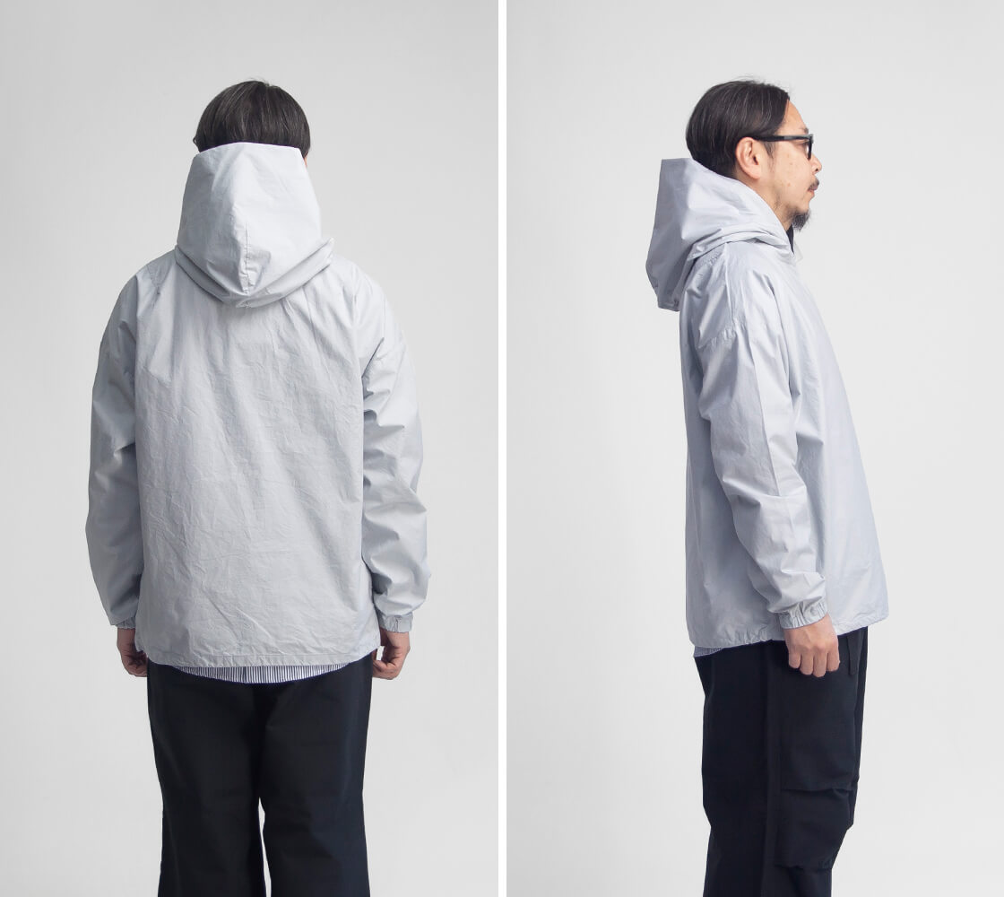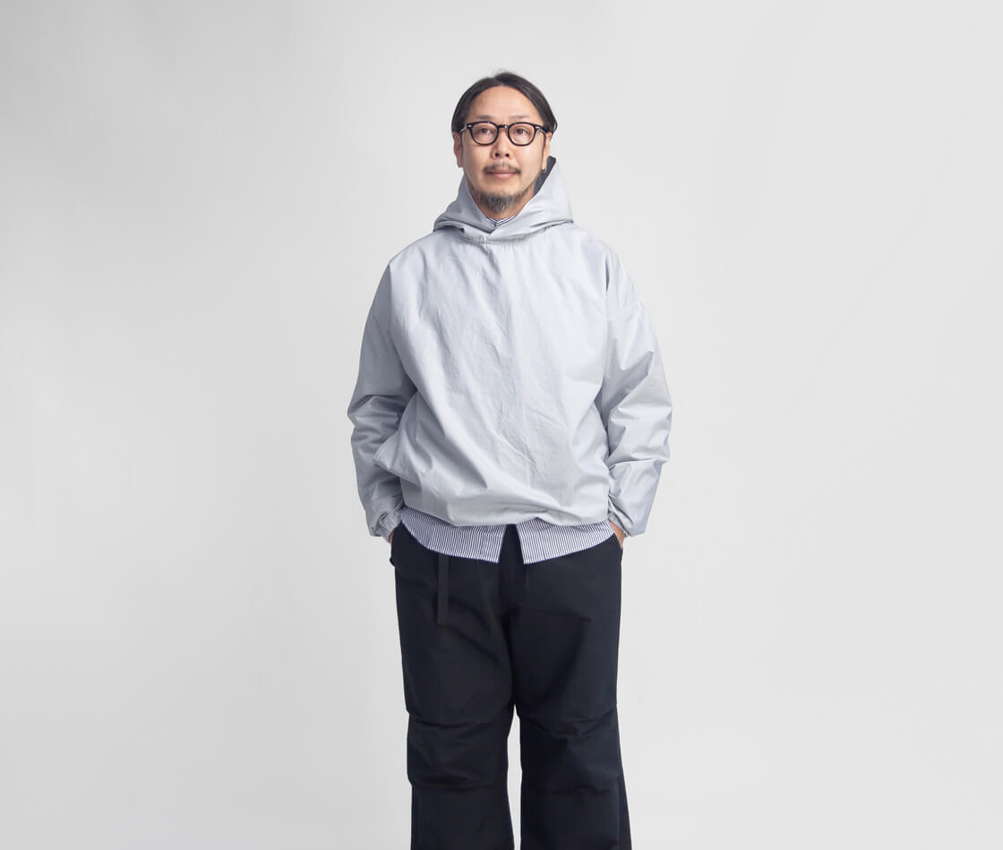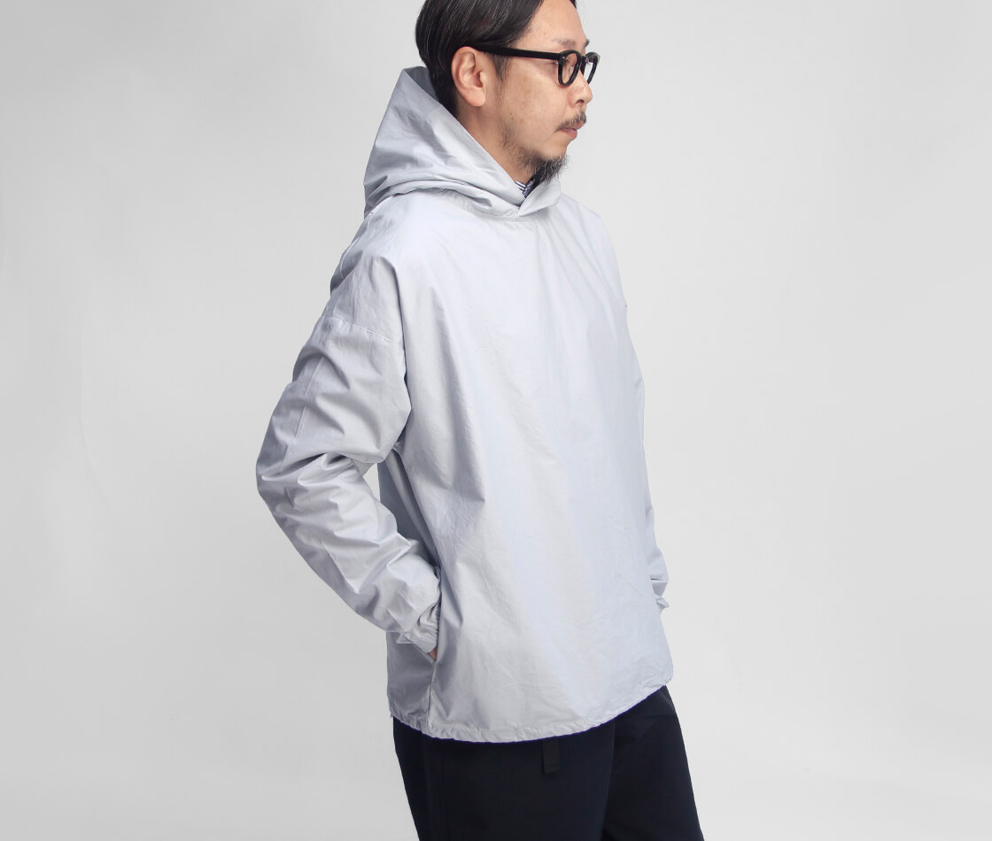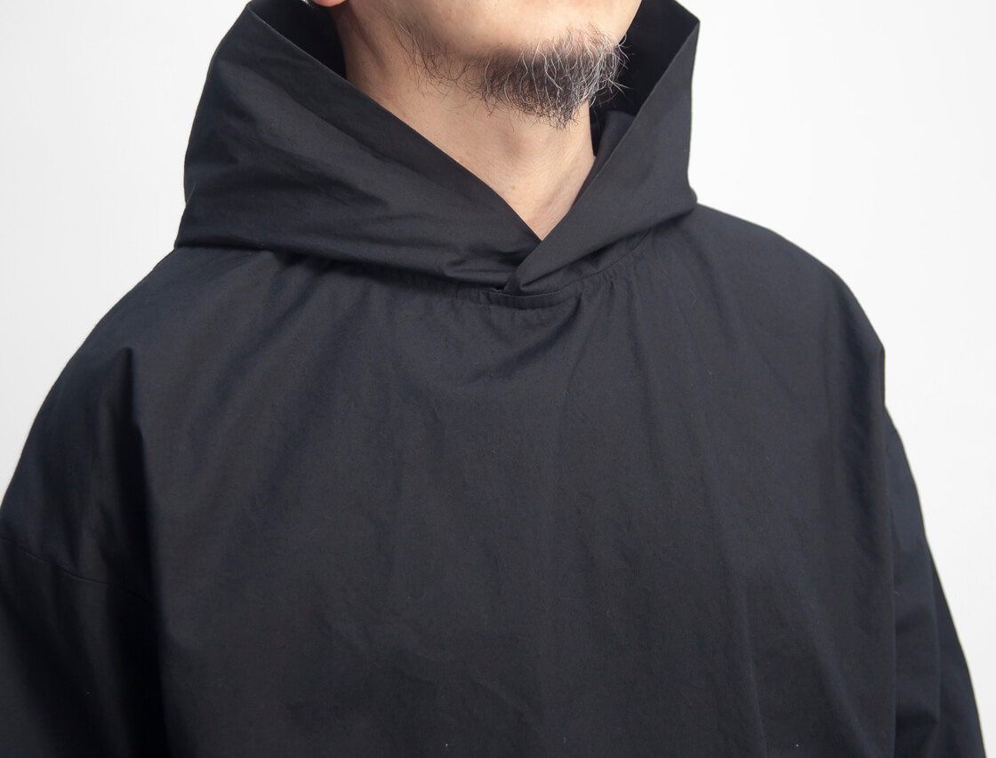 シャツ生地で仕立てたプルオーバー型パーカーという独自性を活かしつつ、今の気分に合わせてシルエットを調整しています。