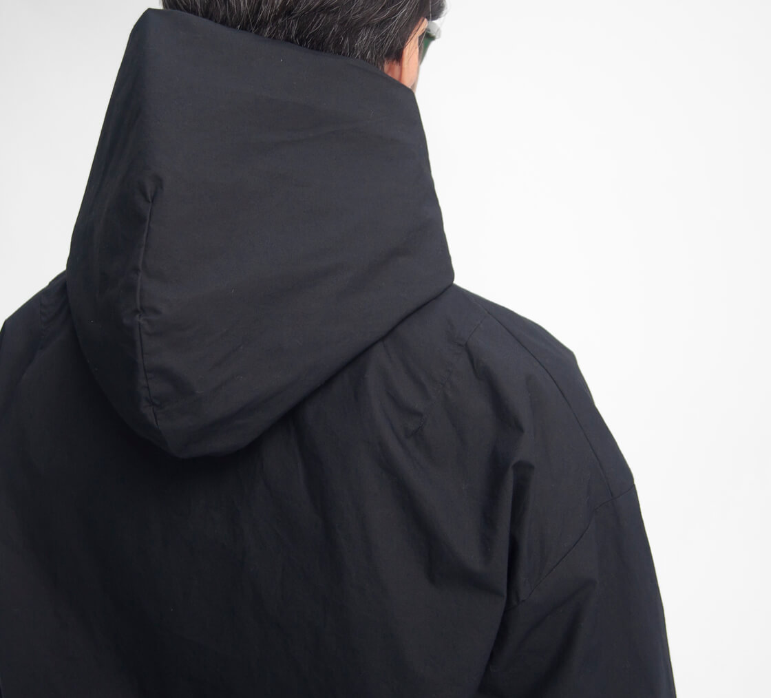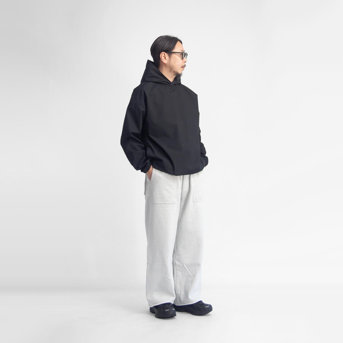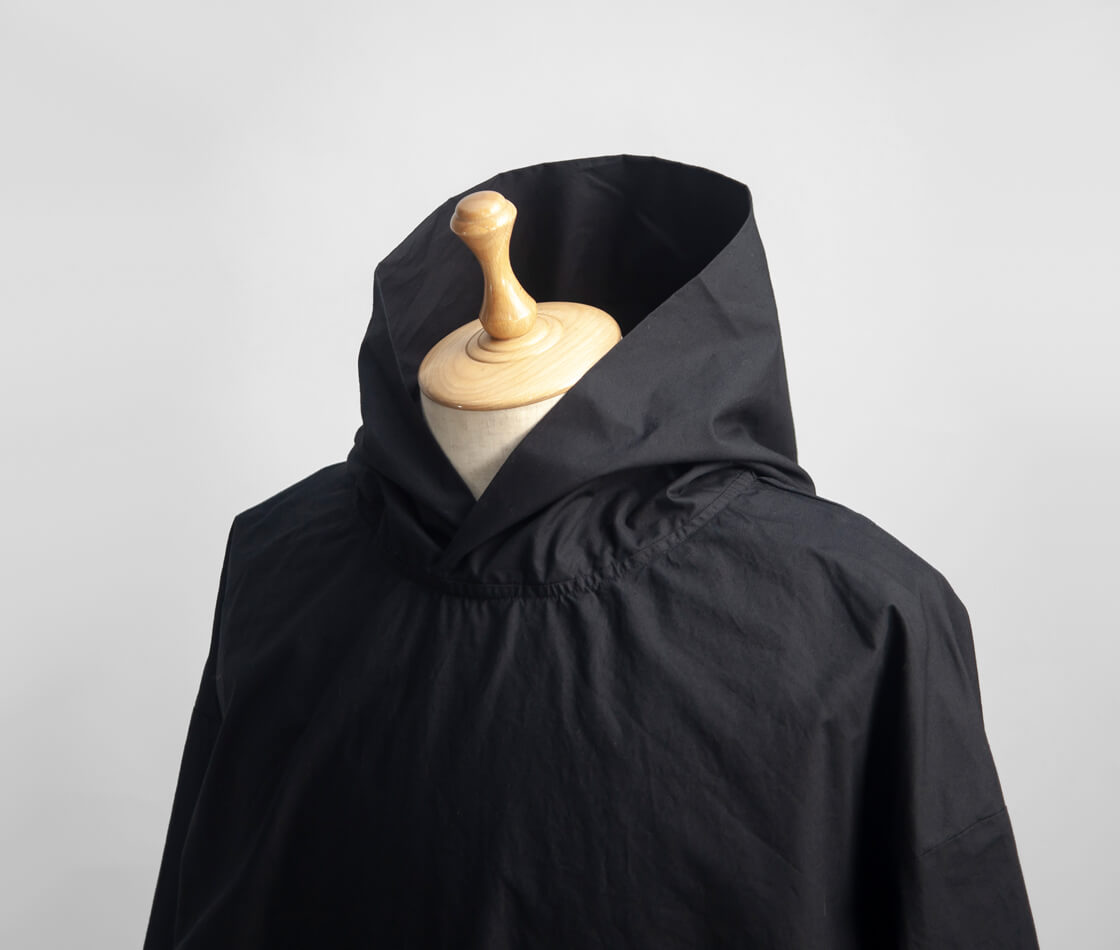 シャツ生地で仕立てたプルオーバー型パーカーという独自性を活かしつつ、今の気分に合わせてシルエットを調整しています。
