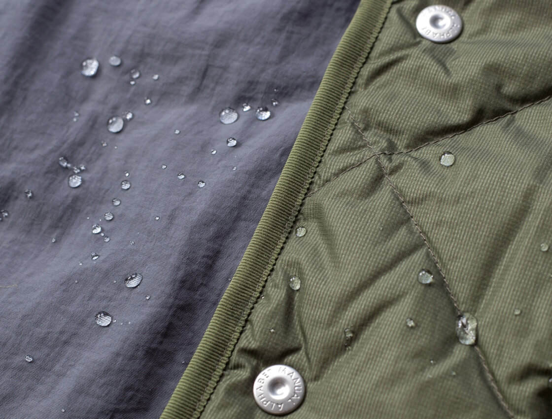 撥水性を持つマイクロリップストップと、コットン調のナイロンタスランタフタを採用。