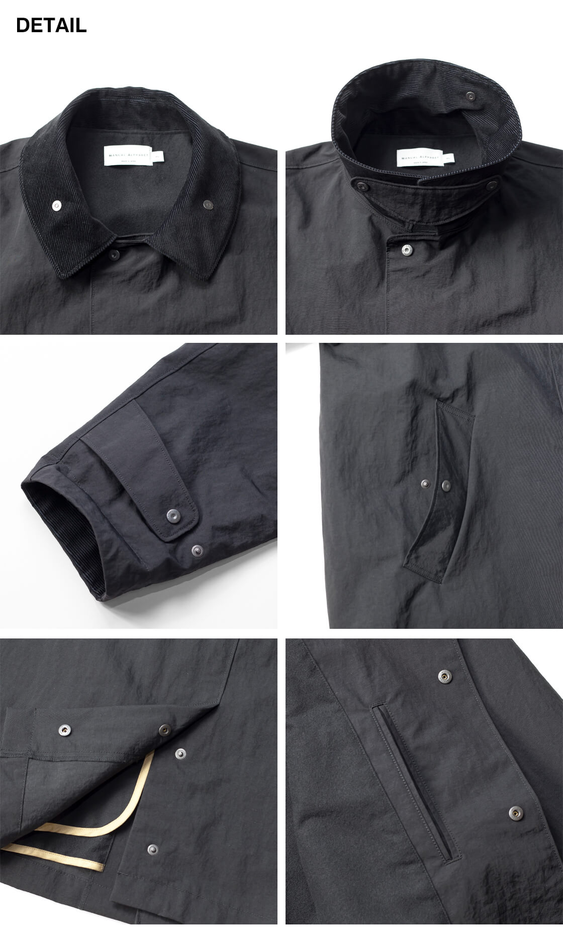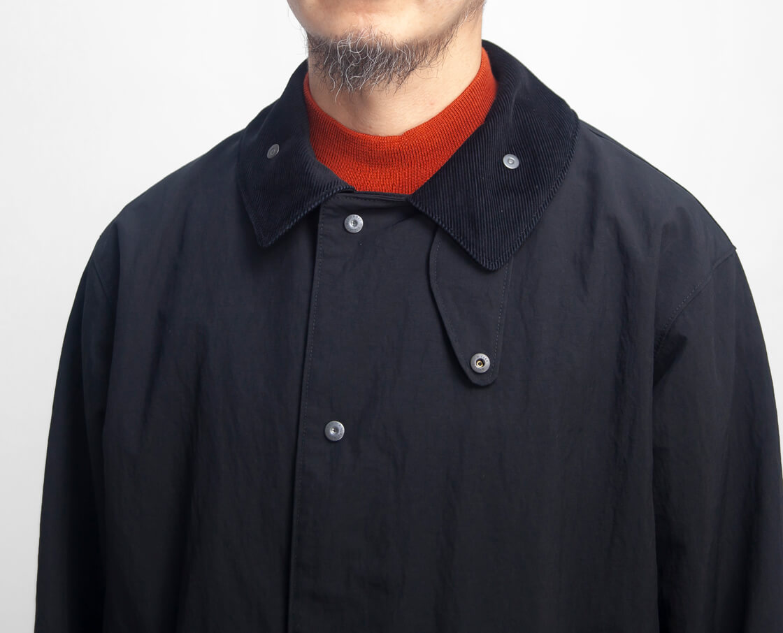 | 製品名 | MANUAL ALPHABET マニュアルアルファベット コーデュロイ襟 ナイロンタッサー バルカラーハーフコート 日本製 メンズ |