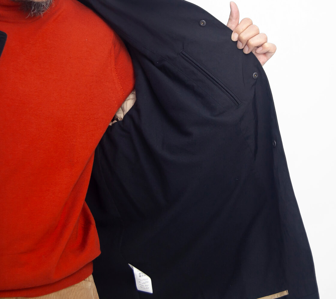 裏地には身頃にフランネル、袖裏に中綿入りのダイヤキルトを配し、保温性と快適さを確保。