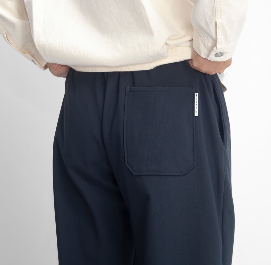 MANUAL ALPHABETから発熱する機能素材LEOTHERO®を採用した「JOURPANTS THERMO WIDE」をご紹介。 シルエットはゆったりしたワイドで、深めの股上と裾に向かって軽くテーパード。 ウエストにはドローコードとゴムを配し、ベルトの着用も可能です。 ポケットなどはシンプルで上品なデザインに仕上げています。 LEOTHERMOは特殊な編み設計により、伸縮を繰り返すことで発熱。 さらに裏面起毛で暖かい空気をため込み、保温性を発揮します。 ジャージーならではの伸縮性と中肉厚の生地で、穿き心地も快適です。 「旅のお供に」と名付けられたJOURPANTSの特徴はそのままに、幅広く合わせやすく旅行などにも最適です。 軽量で扱いやすく、大人のリラックススタイルに寄り添う一本です。