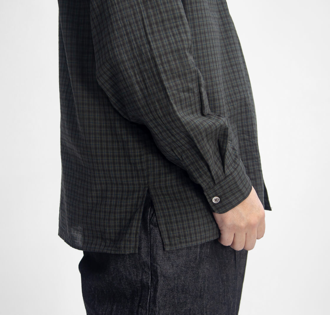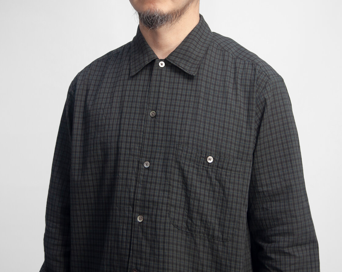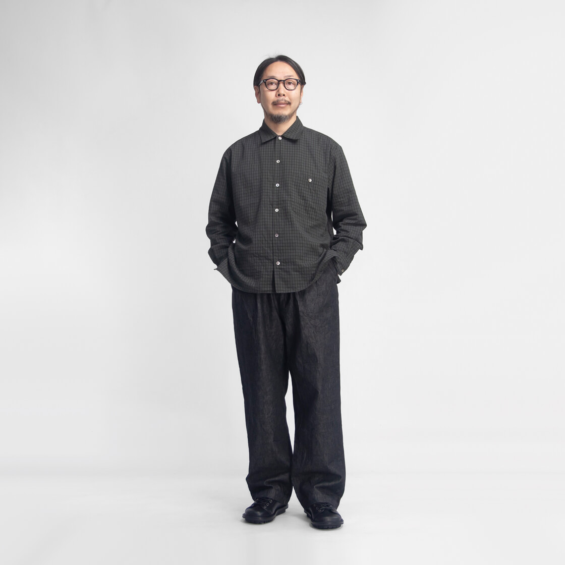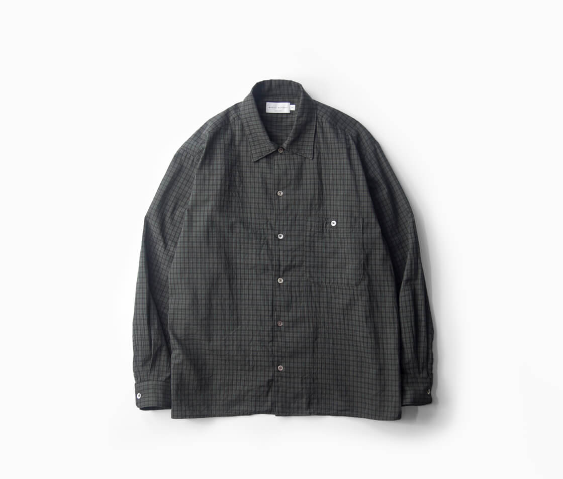 MANUAL ALPHABETから、落ち着いた配色のミニチェック柄のドビーチェック生地を用いたワンナップカラーシャツをご紹介。 ステッチを極力表に出さない縫製により、チェック柄ながらもクリーンでミニマルな印象に仕上げられています。 ボタンの留め方次第で表情が変わるワンナップカラーもポイント。 肩幅・身幅に余裕を持たせた、程よくリラックス感のあるボックスシルエット。 立体感と通気性を備えたコットン100%のドビーチェック生地を採用。 凹凸のある表情とドライなタッチで、見た目以上に涼しく、多少のシワも味として楽しめます。 ラフすぎず堅すぎない、大人にちょうどいいチェックシャツです。
